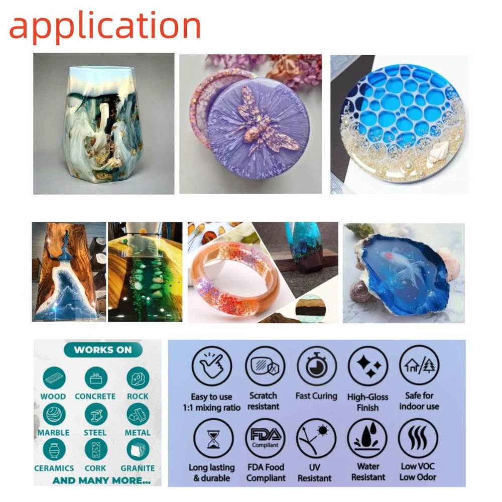 The resin 1:1 mix ratio by volume, 1 Gallon kit is volume 1 Gallon mixed, is the total volume 1 Gallon kit : 64oz resin A + 64oz hardener B (Total 1 Gallon) Features: Mix Ratio...............1:1 by volume Work time ..............45-60 minutes Hardness....................D70-80 after full cure Mixed Viscosity..........2500-3500cps. Chemical Resistance.......excellent Moisture Resistance........excellent FDA Compliant / Food grade: Yes, in its inert fully cured state Heat resistance: up to 80℃ (please don't leave hot pans on it,a coaster needed) Approximate Coverage: 12 square ft per gallon at 1/8 inch thickness Perfect for tabletops, fiberglass work, small castings (under 1.2" /3CM), electrical potting, jewelry making, concrete - pebble coating, marine applications- boat building The resin 1:1 mix ratio by volume , 1 Gallon kit is volume 1 Gallon mixed, is the total volume 1 Gallon kit : 64oz resin A + 64oz hardener B (Total 1 Gallon) package weight : 10lbs Features : Mix Ratio...............1:1 by volume Work time ..............45-60 minutes Hardness....................D70-80 after full cure Mixed Viscosity..........2500-3500cps. Chemical Resistance.......excellent Moisture Resistance........excellent FDA Compliant / Food grade: Yes, in its inert fully cured state Heat resistance: up to 80℃ (please don't leave hot pans on it,a coaster needed) Approximate Coverage: 12 square ft per gallon at 1/8 inch thickness Perfect for tabletops, fiberglass work, small castings (under 1.2" /3CM), electrical potting, jewelry making, concrete - pebble coating, marine applications- boat building, & wood water proofing - repairs. Tips for operation This product is 1:1 fast cure resin, each time mixed, pour No more than 150ml total, (that is 75ml A + 75ml B, A must be ≥ B), with a thickness range of ≤1.2" to avoid bursting. and you can go as deep as you like, just make sure to work in stages. stay under 1.2" per pour. after the surface film cures begin your second pour. the surface set time is roughly 1 hour at room temp. the full cure time is 8-12 hours in summer and 12-24 hours in winter Operation steps 1:1 ratio for A&B glue by volume (A can be 2-5% more than B to make harder) Pour into the mixing cup Along the cup wall and bottom stir it evenly for 1-2 minutes Add glitter or pigmentand if you need Slowly pour mixed resindown the mold Add other decorative Important This chemical needs to be stored in a dry, safe, temperature controlled environment. Always keep the lids tightly sealed when not in use. Remember, oxygen and moisture oxidize and can rapidly degrade the epoxy and hardener. Moisture is also a potential issue. Always keep the bottles sealed when not in use. When applying this product, use gloves, goggles, and proper safety equipment. Please refer to the safety data sheet before using any of our epoxy products. Payment Shipping details Return policy About us Contact us Payment We accept Paypal,Google Pay,VISA,Master Card,American Express and Discover. Shipping details We usually ship from US within 1-3 business days with tracking number by USPS or UPS. Return policy 30 days returns. Seller pays for return shipping. About us We are a trustworthy and professional eBay seller. Contact us If any problems about our product and service,contact us for free at any time via eBay messages. A:B Ratio 1:1(volume ratio) Brand FUNEPOXY Color Clear Handmade Yes Capacity 1 Gallon Total Volume Kit 64oz epoxy resin A + 64oz hardener B