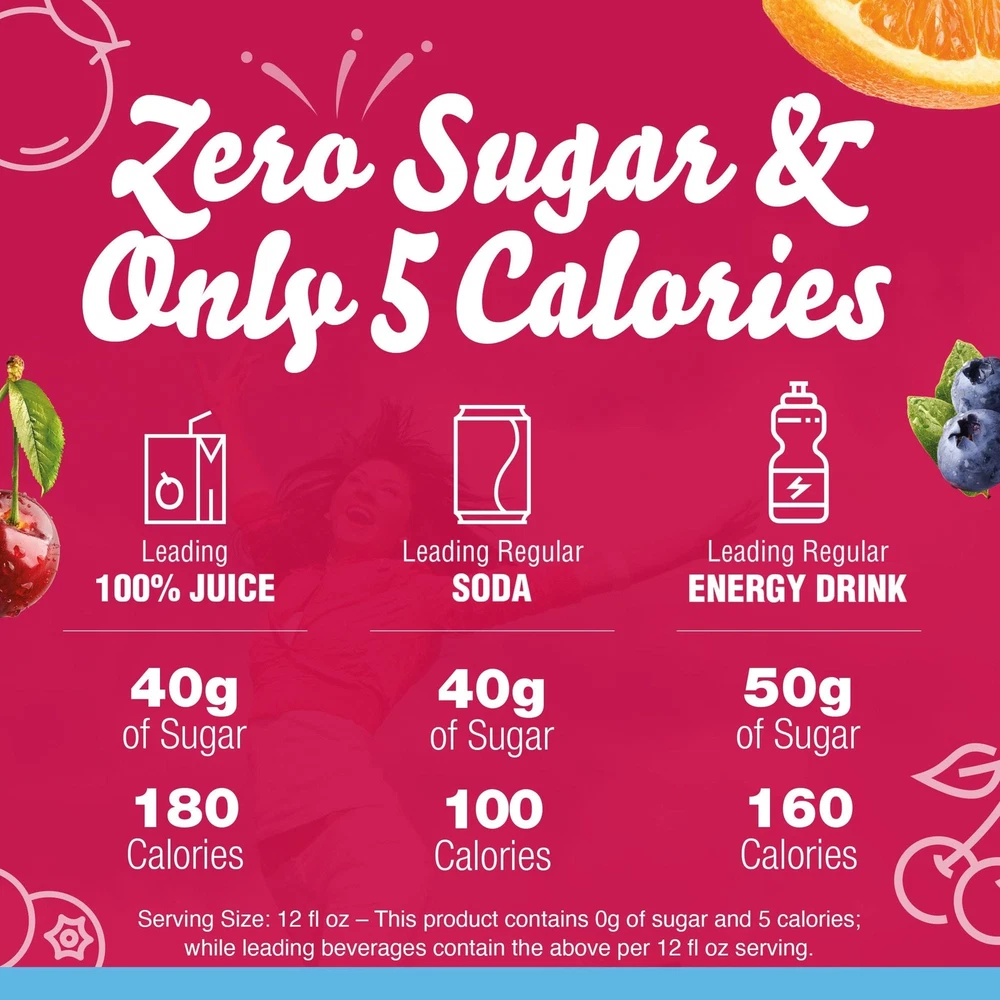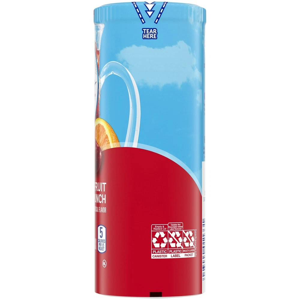 Product Description Crystal Light Fruit Punch Artificially Flavored Low Calories Powdered 4 Pitcher Packet Drink Mix 1.36 Oz (Pack Of 1) It offers a classic fruit punch flavor for a refreshing taste. Each pitcher packet of powdered fruit punch mix in this 4 count canister is perfectly portioned to make 2 quarts or 1 pitcher of Crystal Light, so there's plenty to share with family and friends. Simply mix one packet of fruit punch powder with 8 cups or 2 quarts of water, stir, and enjoy! All the flavor and only 5 calories... just the way you like it. Crystal Light Artificially Flavored Fruit Punch Powdered Drink Mix delivers low calorie refreshment Each pitcher packet makes 5 servings or one 2-quart pitcher Made with zero sugar and 5 calories per serving for guilt-free refreshment Classic fruit punch flavor for a refreshing taste 90 percent fewer calories than leading beverages; this product 5 calories, leading beverages 70 calories Comes in a variety of sizes for all your beverage needs 4 ct. canisters of Crystal Light Artificially Flavored Fruit Punch Powdered Drink Mix Ingredients CITRIC ACID (PROVIDES TARTNESS), MALTODEXTRIN, CALCIUM PHOSPHATE (PREVENTS CAKING), ASPARTAME* (SWEETENER), MODIFIED CORNSTARCH, RED 40, CONTAINS LESS THAN 2% OF NATURAL AND ARTIFICIAL FLAVOR, POTASSIUM CITRATE (CONTROLS ACIDITY), ACESULFAME POTASSIUM (SWEETENER), SALT, ARTIFICIAL COLOR, BLUE 1, BHA (TO HELP PROTECT FLAVOR). *PHENYLKETONURICS: CONTAINS PHENYLALANINE. Nutrition facts Refer to the product label for full dietary information, which may be available as an alternative product image. 32.0 Servings Per Container Serving Size 1.900000 Amount per serving Calories 5 Amount per serving % Daily Value* Total Fat 0g 0% Sodium 10mg 0% Total Carbohydrate 0g 1% Sugars 0g Includes Added Sugars 0g Protein 0g Calcium 40.0mg 4%