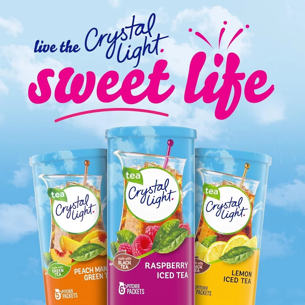 Crystal Light Sugar Free Raspberry Iced Tea Naturally 6 Count Pack of 12 Brand New Item. Free Fast Shipping . Products Description: Crystal Light Naturally Flavored Raspberry Iced Tea Powdered Drink Mix is a refreshing beverage you can enjoy at any time of day. With zero grams of sugar and only 5 calories per serving, Crystal Light is a sweet alternative to juice and soda and has 90 percent fewer calories than leading beverages (this product is 5 calories, leading beverages are 70 calories), so you don't have to choose between taste and calories. It's also made with real black tea for a refreshingly smooth taste. Each pitcher packet of powdered iced tea mix in our 12 pack of 6 count canisters (72 packets total) is perfectly portioned to make 2 quarts or 1 pitcher of Crystal Light sugar-free iced tea, so there's plenty to share with family and friends. Simply mix one iced tea packet with 8 cups or 2 quarts of water, stir and enjoy All the flavor and only 5 calories, just the way you like it. About this item: · Seventy-two pitcher packets of Crystal Light Naturally Flavored Raspberry Iced Tea Powdered Drink Mix · Crystal Light Naturally Flavored Raspberry Iced Tea Powdered Drink Mix comes in pre-portioned pitcher packets for easy preparation without measuring · Each pitcher packet makes 5 servings or one 2 quart pitcher · Classic raspberry flavor for a fruity taste · Fruit drink powder made with zero sugar for a guilt-free refreshment · Empty one pitcher pack into a pitcher of 2 quarts water, stir and enjoy · 90 percent fewer calories than leading beverages; this product is 5 calories, leading beverages are 70 calories · SNAP & EBT eligible food item Ingredients CITRIC ACID, MALTODEXTRIN, CORN SYRUP SOLIDS*, INSTANT TEA, MALIC ACID, ASPARTAME**, ACESULFAME POTASSIUM, CONTAINS LESS THAN 2% OF NATURAL FLAVOR, SODIUM CITRATE, MAGNESIUM OXIDE, RED 40, YELLOW 5, BLUE 1.* ADDS A TRIVIAL AMOUNT OF SUGAR ** PHENYLKETONURICS: CONTAINS PHENYLALANINE Return & Exchange: We Accept return as per eBay Return Policy, Customer satisfaction is our priority. If there is a problem with your order then please contacts us, we will provide you the best solution. Return shipping is the buyer's responsibility unless the return is a result of our mistake. We will pay for shipping replacement back to you if an exchange is requested. Note: Customer satisfaction is very important to us. If you have any problem with your order, please contact us and we will do our best to make you satisfied, please do not a negative feedback before we resolve your problem, we guarantee that your issue will be solved quickly. This item cannot be shipped to AK, HI, Puerto Rico, FAA Address, APO, FPO, PO Box and outside of USA.