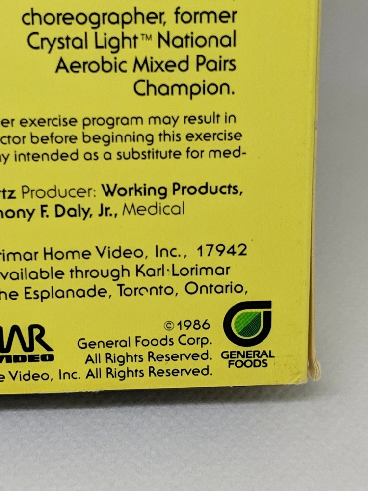 Crystal light NATIONAL AEROBIC CHAMPIONSHIP WORKOUT Susan Anton (VHS, 1986) OOP