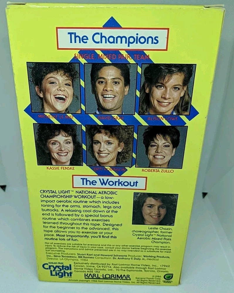 gtin13: Does not apply Sub-Genre: Exercise/Fitness Language: English Studio: Karl Lorimar home video Movie/TV Title: crystal light national aerobic championship workout UPC: Does not apply Former Rental: No Actor: Leslie Chazin Genre: Exercise & Fitness Signal Standard: NTSC
