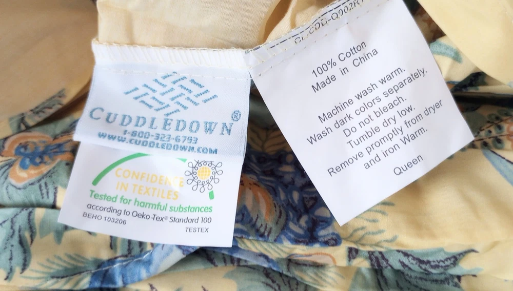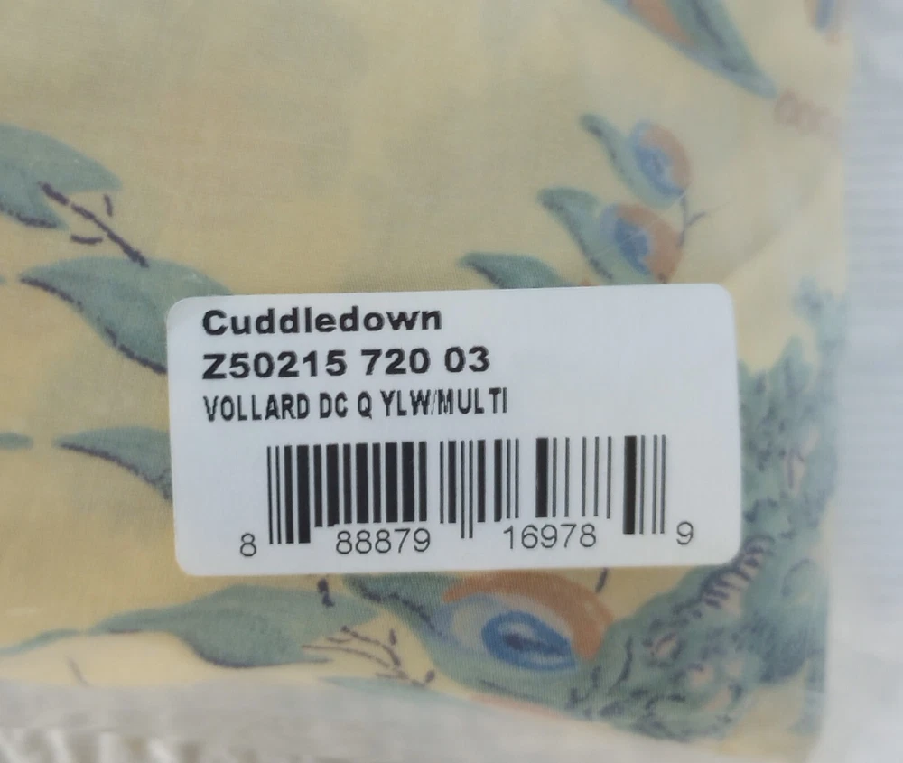 Cuddledown Vollard Queen Duvet Cover Yellow and Blue Asian Style Cotton Duvet
