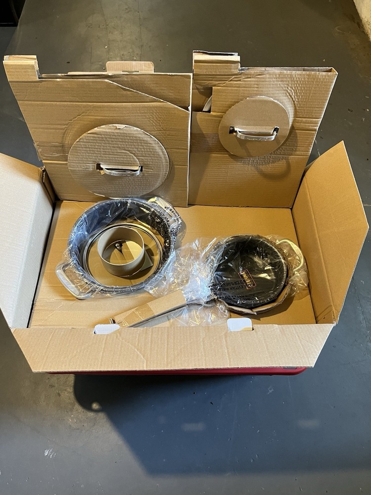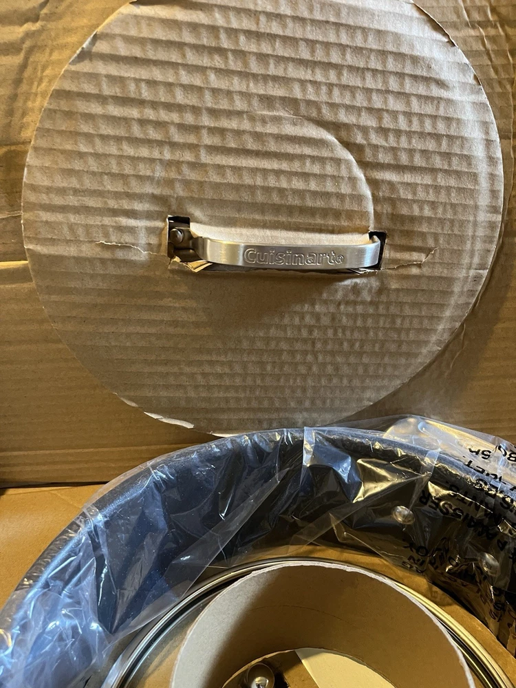 The Cuisinart Chef's Classic 11-Piece Cookware Set in Black is a high-quality pan set designed for use on various stove types including induction, electric, and gas. Made of stainless steel with aluminum core and a non-stick surface coating, this set includes a variety of items such as saucepans, skillets, and a stockpot. The set not only comes with lids for each piece, but also features heat resistance of up to 500°F and is dishwasher safe for easy cleaning. With a lifetime manufacturer warranty, this set is a reliable and durable addition to any kitchen. Given to us as a duplicate wedding gift. Brand new and never used.