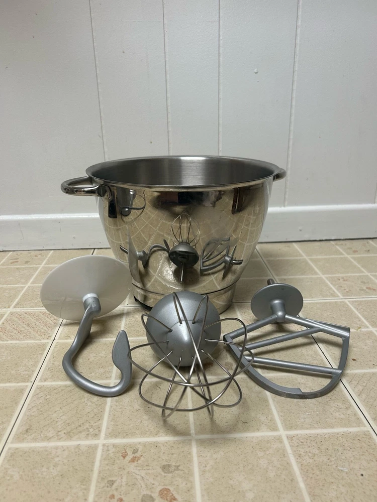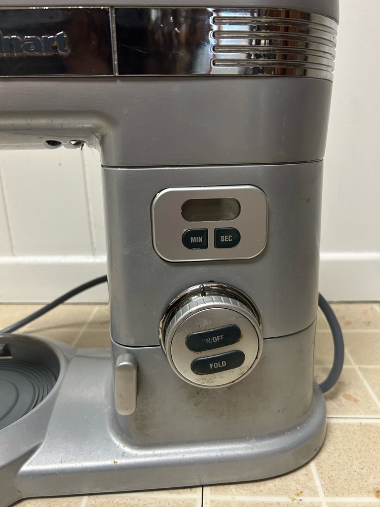 This Cuisinart SM-70BC stand mixer is a versatile kitchen appliance that can help you create delicious meals with ease. With a 7 qt capacity, it is perfect for making a variety of dishes, and the 12-speed settings/programs allow you to customize your cooking preferences. The mixer comes with 3 attachments and bowl, making it easy to mix ingredients and whip up your favorite desserts. Its electric power source ensures that you can use it for extended periods without any interruptions. The sleek silver color of the mixer adds a touch of elegance to your kitchen, and its standalone design makes it easy to store when not in use. Could use cleaned up a bit from use and storage but it still works!