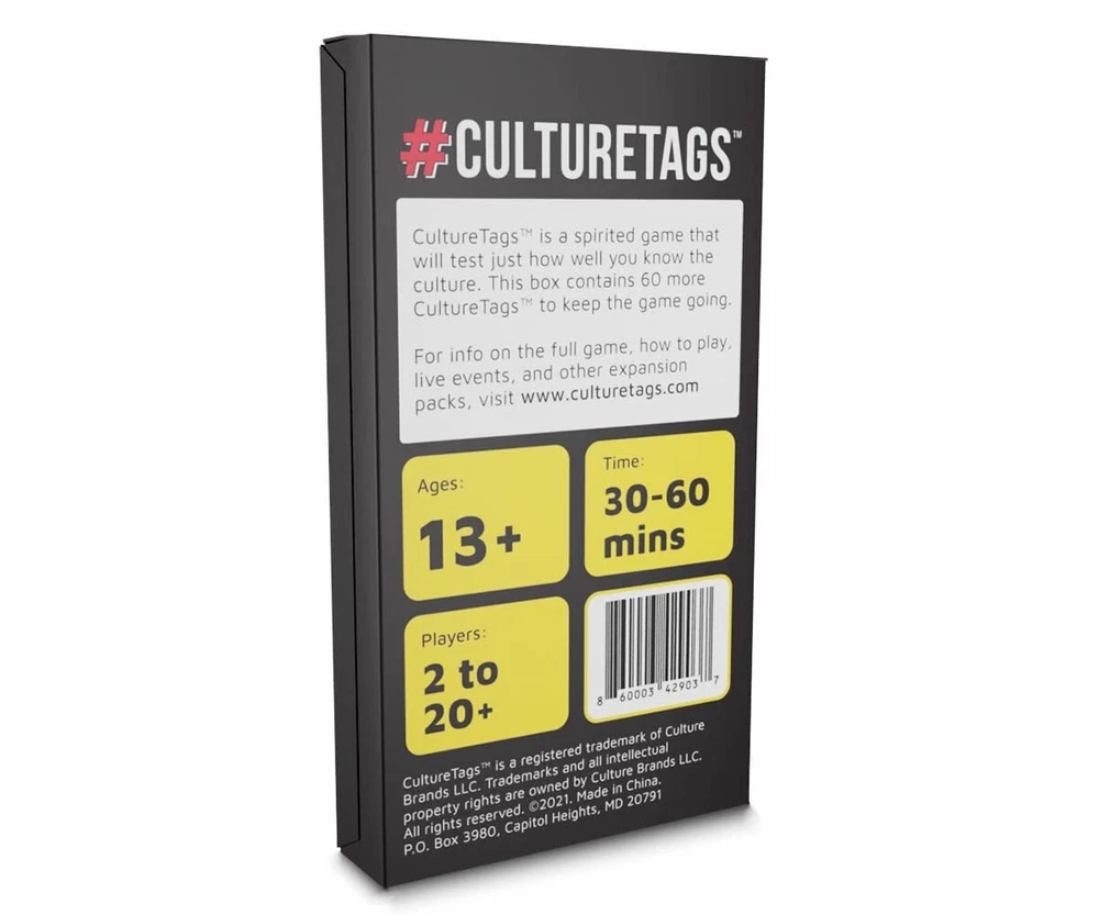 #CultureTags Expansion Pack Blessed & Highly Favored, Gift for Family & People Who Love Hashtags + Culture, 60 New Cards, Ages 13+ Years, CB Games EXPANSION PACK: Unleash saints and aints with cultural phrases. Test your knowledge IN THE BOX: 60 new cards for CultureTags game. Expand your expertise with this exciting addition. No rule card, timer, or DIY cards included HOW TO PLAY: Engage in lively gameplay, whether in person or virtually, by announcing the category and giving hints to guide others in guessing the CultureTag before the clock runs out LIMITLESS FUN & LAUGHTER: Gift the perfect game - a family-friendly, multigenerational card game. Ideal for holidays, birthdays, or housewarmings, it's great as a stocking stuffer. Ages 13+ BLACK OWNED: USA game company, and creators of Because of Them We Can, delivering uproarious fun with their must have card game and endless entertainment The #Culturetags Blessed and Highly Favored expansion pack features phrases and sayings that will help you tell the saints from the aints! Includes 60 new Culture Tags to add to the core game. No rule card, timer or DIY cards included. Shipping We offer FREE shipping on all orders! We use a selection of shipping services such as UPS, FedEx, USPS etc. We only ship to the lower 48 states, no APO/FPO addresses or PO Boxes allowed. Local pickups and combined shipping options are not provided at this time. Return You can return a product for up to 30 days from the date you purchased it. Any product you return must be in the same condition you received it and in the original packaging. Please keep the receipt. Payment We accept payment by any of the following methods: PayPal Please pay as soon as possible after winning an auction, as that will allow us to post your item to you sooner! Feedback Customer satisfaction is very important to us. If you have any problem with your order, please contact us and we will do our best to make you satisfied. Contact Us If you have any queries, please contact us via ebay. We usually respond within 24 hours on weekdays. Please visit our eBay store to check out other items for sale! Thank you for shopping at our store.