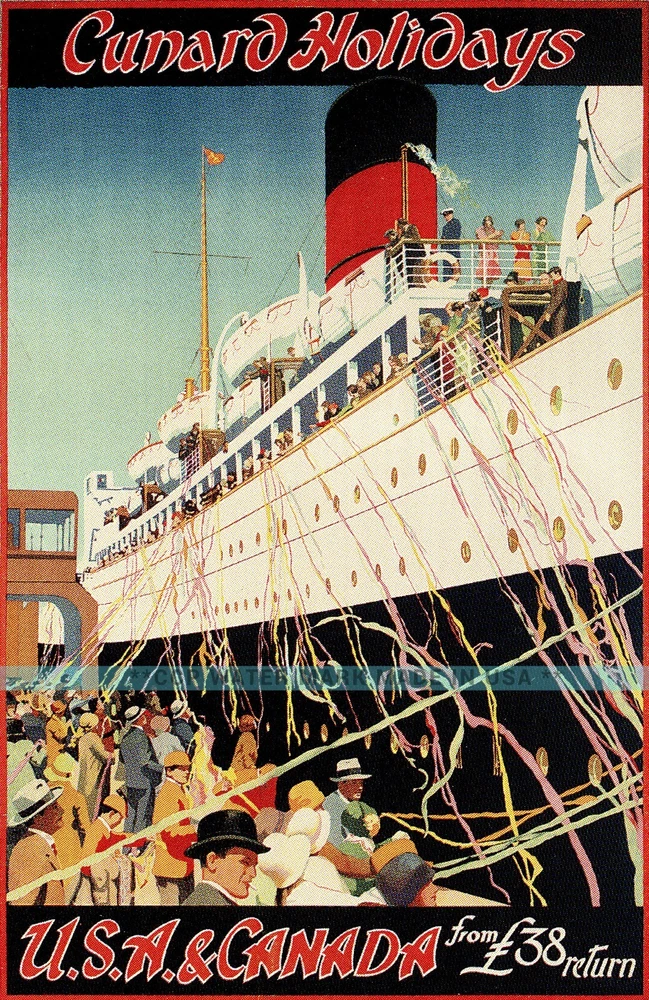 Cunard Holidays 1920's USA & Canada Classic Ocean Liner Travel Poster Art Vintage Poster Print Retro Style Restored Art **We offer Free US Postage or Reduced Postage for Canada and worldwide. **No Extra Post Charges For Multiples!! **These are not framed or stretched or mounted NOTE:**Delivery dates shown are only "Suggested" Order Early To Avoid Post Delay Dramas **Read Please: The print looks best with a nice mat (passe-partout or Passepartout) and frame. These prints are the exact proportion as the original and will not be stretched to fit the paper or canvas...this would cause a distorted print The image will be the exact aspect ratio as per the original poster, so there might be more white on the top and bottom, or side to side. Options available..use the drop-down menu *Watermark will not be on your image. *Cloth Canvas is an artist's canvas used in museums and art galleries *Photo Gloss Paper is a high-quality Professional Photo paper *Matte Photo Paper is a great solution if you do not want a Gloss, this paper is great with colors *Luster Photo Paper This photo paper is neither glossy nor mat. Glossy paper has a smooth texture, and luster paper is slightly textured. This option is a good choice for something in between Metallic, Photo Gloss, and Matte *Metallic Pearlescent Photo Paper is a very high-quality paper with a Pearlescent sheen, a glossy finish, and a unique metallic appearance, these prints have extra visual interest and depth. This paper uses a combination of film laminate layers that produce striking, dimensional, lasting images on an ultra-bright background. The effect is sometimes described as "chrome on paper." This is NOT a metal plaque, it is a photo paper This poster print will be shipped in a sturdy container. We will ship usually within 24 business hours of payment, except for weekends or US Holidays If there is a question, please do contact me The delivery date given on the listing page is not guaranteed by the post All is done to send you the best quality poster image. Don't forget to check out the Sales. There is a great Buy 3 Get 1 Free Offer!! Shipped Worldwide!! There are a variety of reasons why the images on your monitors don't match each other. The simplest is that each monitor is different; even monitors with the same model won't have colors that match up perfectly We are located and ship only from the USA