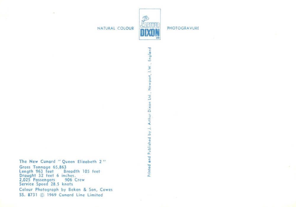 Experience the luxury and grandeur of the new Cunard liner Queen Elizabeth 2, boasting impressive dimensions and top-notch service for over 2000 passengers. This color photograph captures the majestic vessel in all its glory.