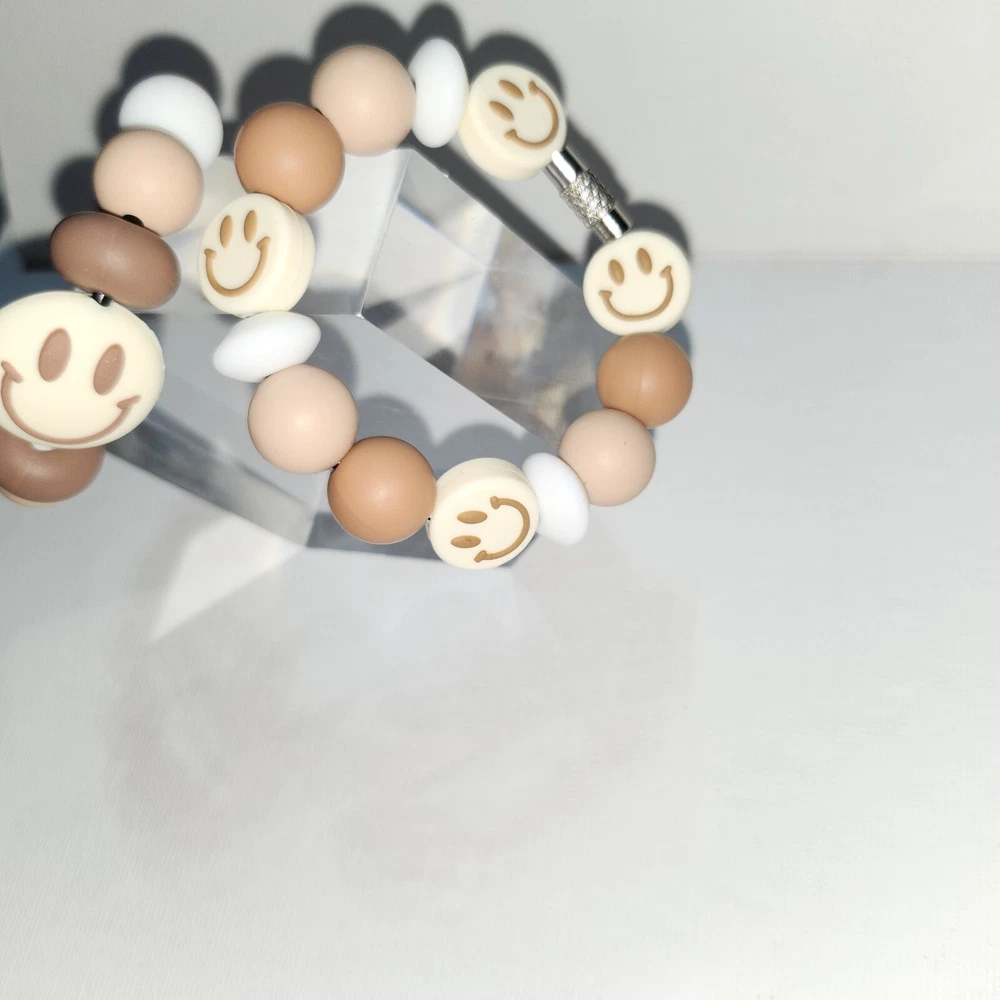 This handmade cup charm is a perfect accessory for your tumbler handle. The round spacer beads come in a lovely combination of brown and white, with a cute smiley face π design. The charm is made of high-quality silicone material with a matte finish for durability. The charm is a great addition to your collection of cup accessories and can be used as a decorative piece or a marker for your drink. It is suitable for all types of tumblers and cups. Add some personality to your cup with this adorable cup charm! If you prefer to purchase just one, message me & I'll update. $8.50 Each If you have any questions regarding this item, please feel free to message me. Beads can be washed as needed in warm soapy water. All the beads I used came from ABC Bead Supply. Product made May 2024