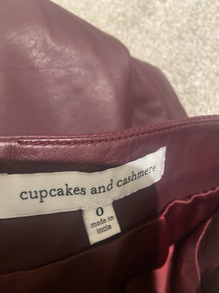 Vintage:NoDepartment:WomenOccasion:CasualColor:RedStyle:MiniPersonalize:NoClosure:ZipSize Type:RegularMaterial:LeatherType:SkirtSize:0Brand:Cupcakes and CashmereFeatures:LinedSkirt Length:Short