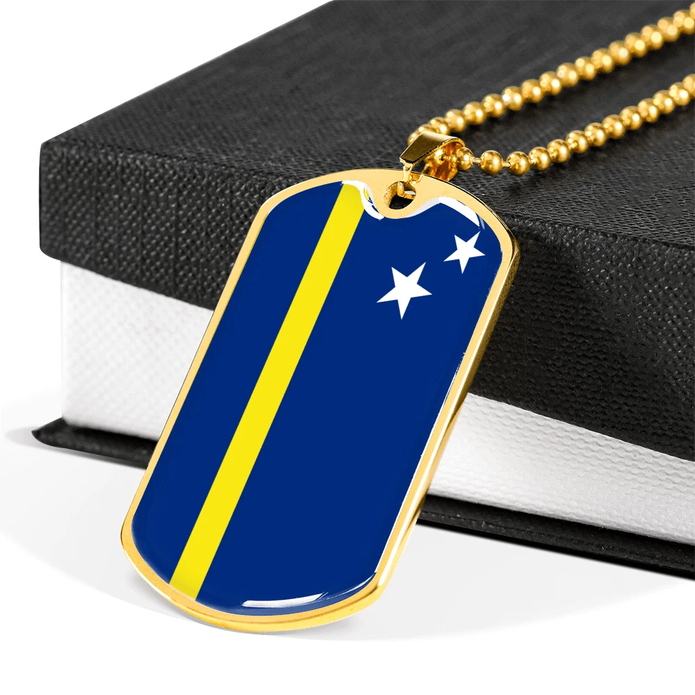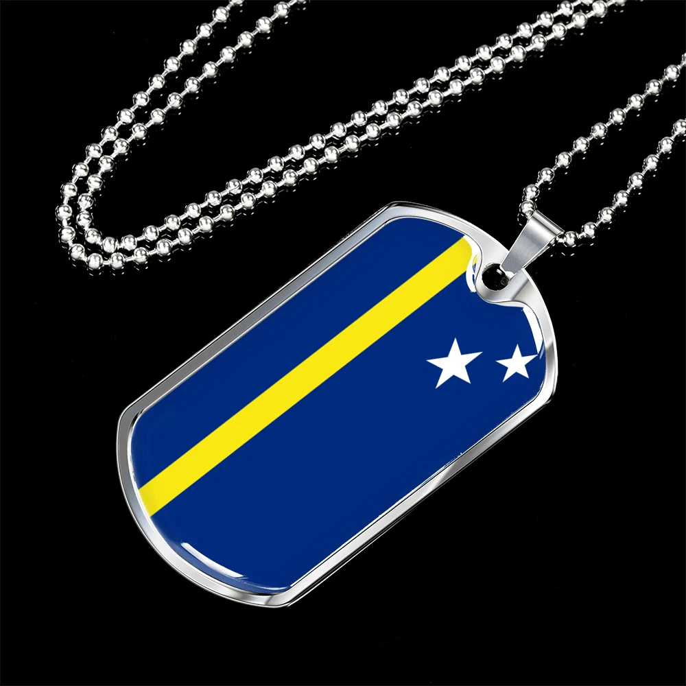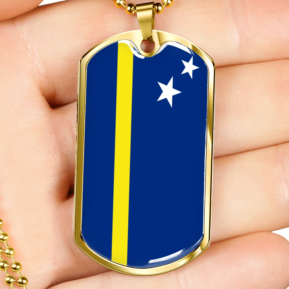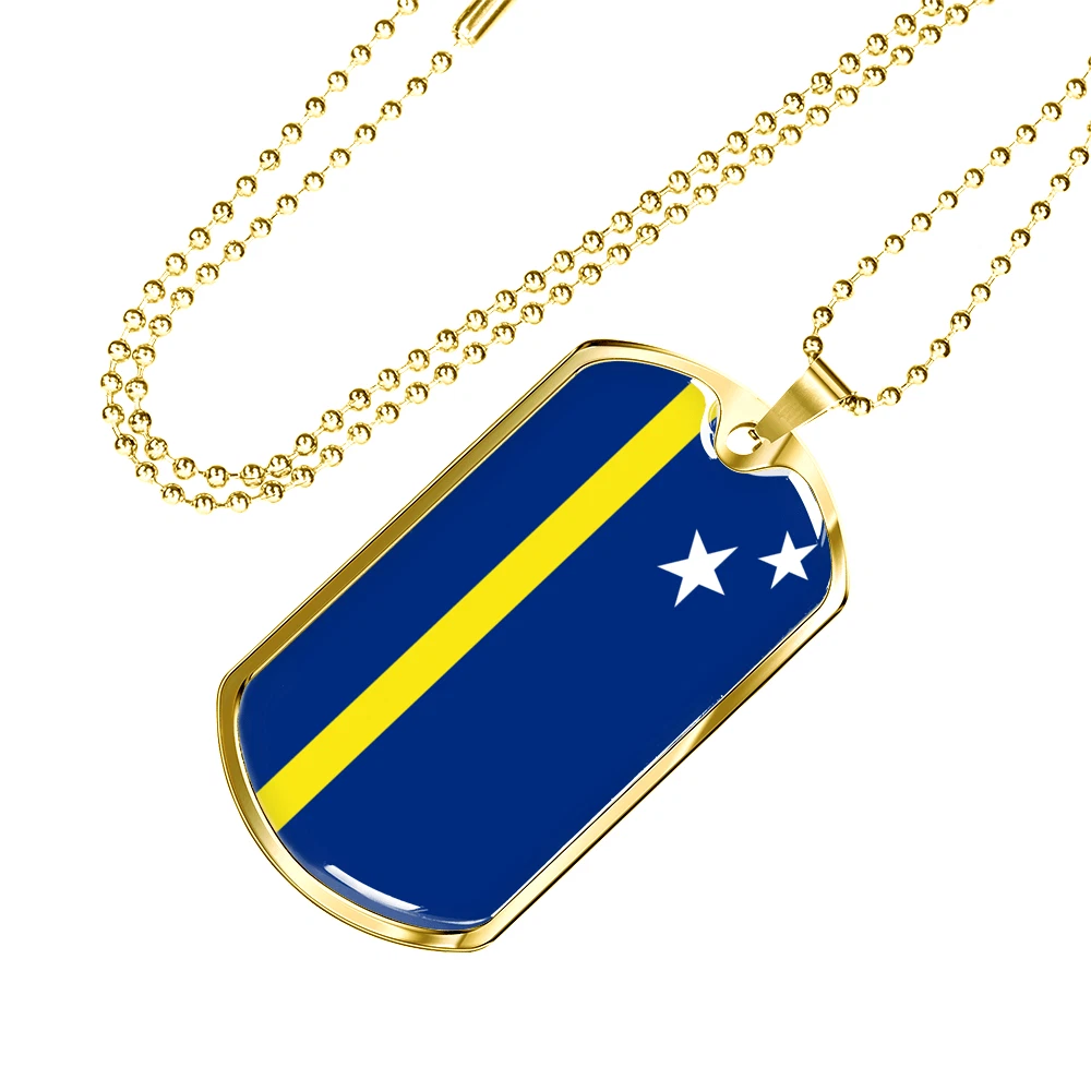 Curacao Flag Necklace Stainless Steel or 18k Gold Dog Tag 24" Chain