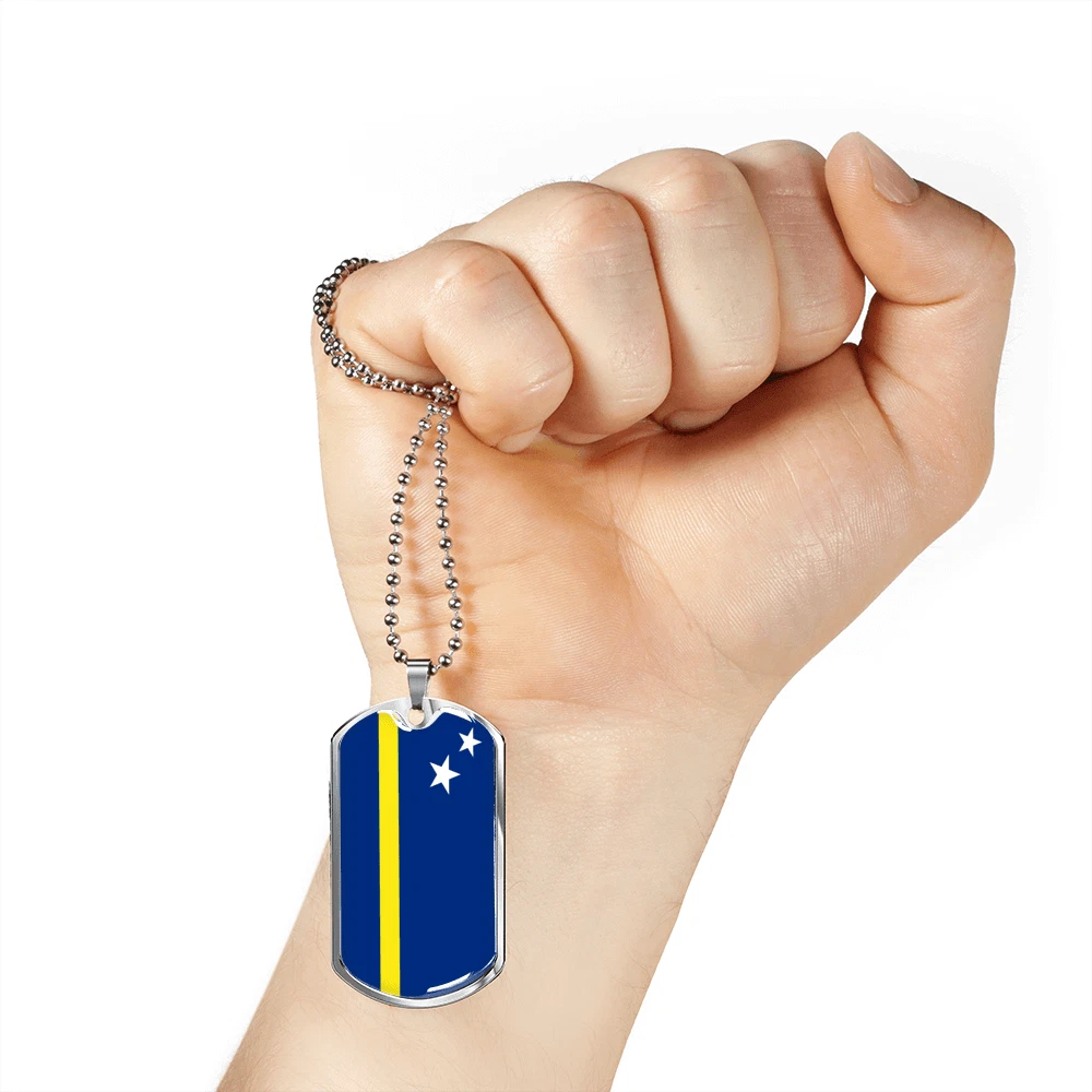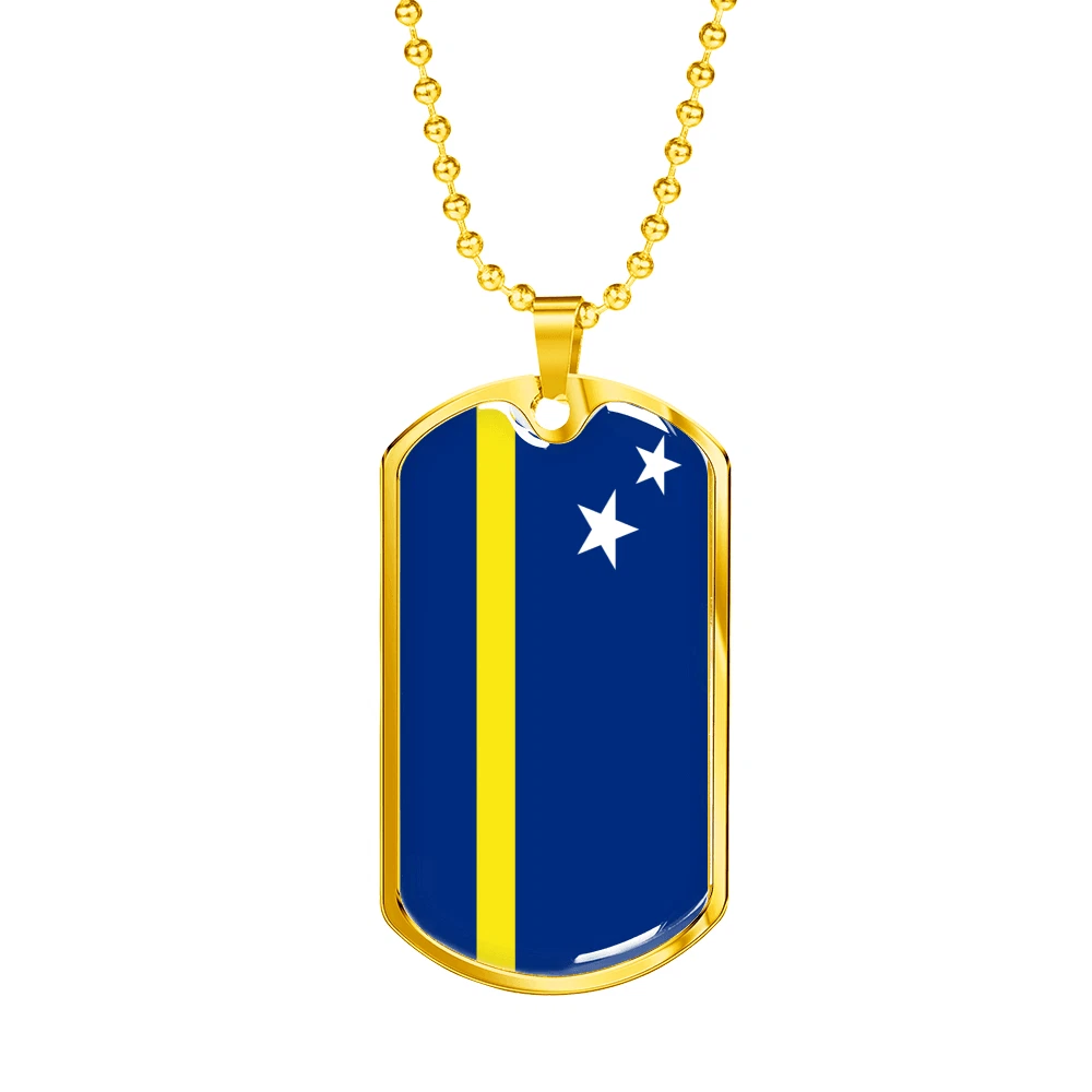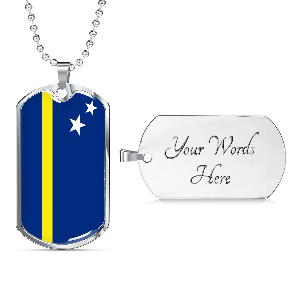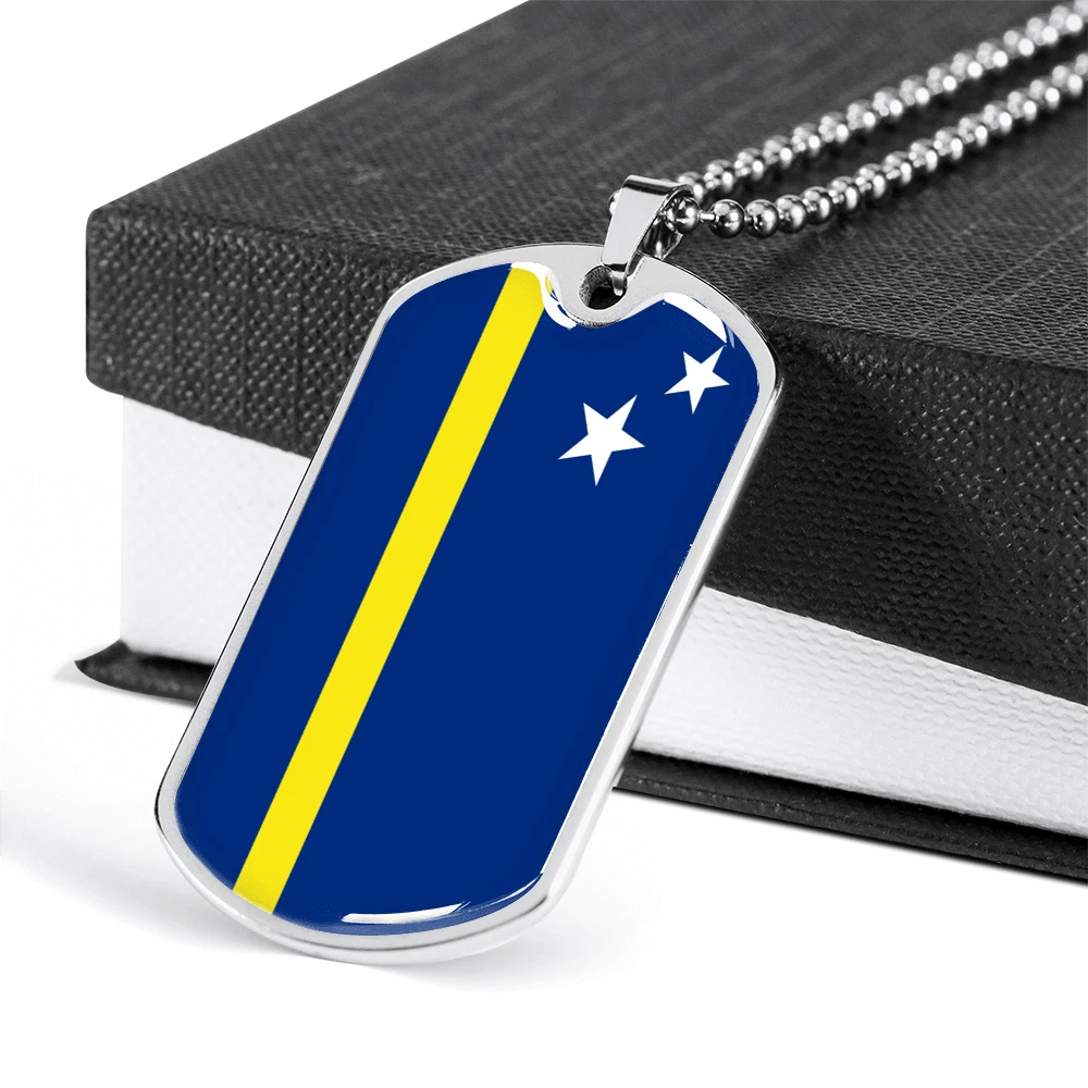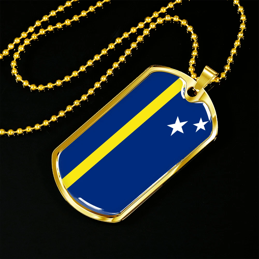 Curacao Flag Necklace Stainless Steel or 18k Gold Dog Tag 24" Chain