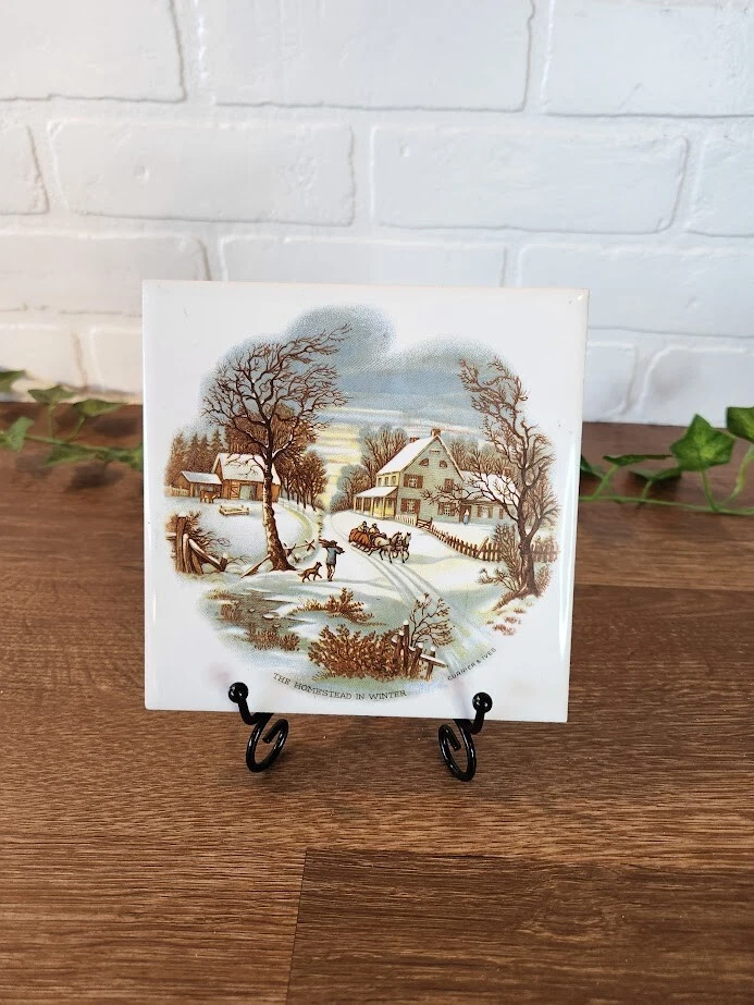 Elevate your home's charm with the Currier & Ives The Homestead In Winter Square Ceramic Tile Trivet. This delightful piece is not only a functional trivet but also a decorative wall hanging, perfect for adding a touch of Americana to any room. The smooth finish and sturdy ceramic material make it ideal for protecting your surfaces or walls, while the square shape and winter scene create a quaint, seasonal appeal.Whether placed on a table, counter, or wall, this trivet brings a unique style to your space. Its American brand heritage and the timeless Currier & Ives aesthetic ensure it will be a cherished addition to your home, capturing the essence of the festive season and the warmth of bygone days.