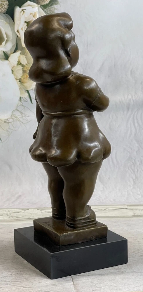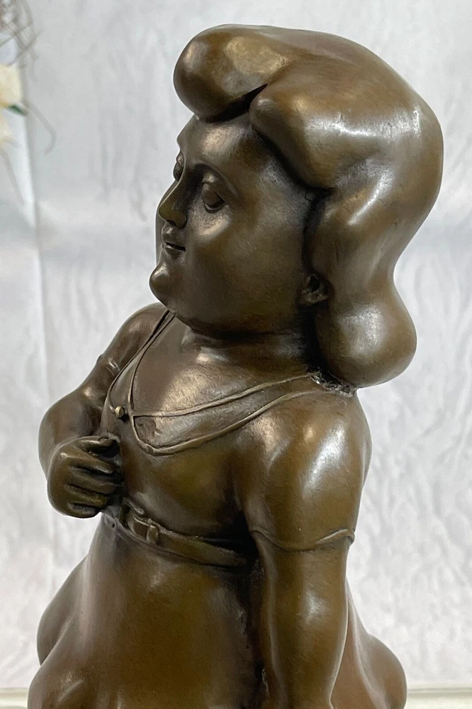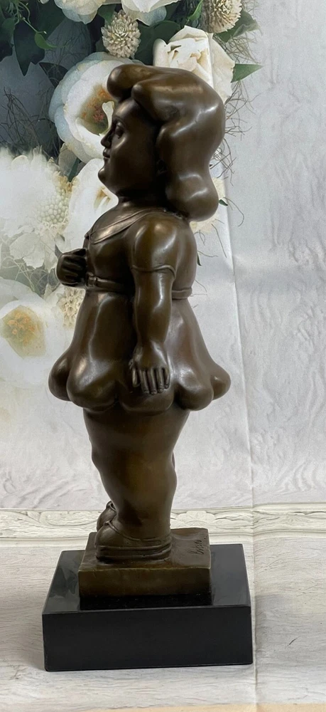 Curvaceous Nude Abstract Lady Bronze Sculpture Signed Botero Statue Gift Figure Curvaceous Nude Abstract Lady Bronze Sculpture Signed Botero Statue Gift Figure Condition : This sculpture is in perfect condition. Bronze Dimensions with Marble Base: Height 13" X Width 4 1/2" Marble Dimensions:4 1/2" X 4 1/2" Height without base:12" Weight:10 LBS Inventory:49Y2224694 This remarkable bronze sculpture, created by the renowned artist Fernando Botero, is a true masterpiece that encapsulates the essence of his unique style. Botero is celebrated for his distinct approach to art, characterized by the exaggeration of form and the playfulness of his subjects. In this piece, a plump and generously proportioned young girl stands as a delightful representation of Botero's artistic vision. Her rounded and curvaceous figure draws the viewer's attention, inviting exploration of the sculpture's tactile surfaces. Crafted using the traditional "Lost Wax Method," this sculpture exhibits exceptional craftsmanship and attention to detail. The rich brown patina finish not only enhances the artwork's visual appeal but also ensures its longevity. Resting gracefully on a black marble base, this sculpture is not just a work of art but a statement piece that adds sophistication and character to any setting. Fernando Botero's signature graces the base of this sculpture, emphasizing its origin and artistic significance. Whether displayed in a private collection, gallery, or public space, this piece serves as a testament to Botero's ability to create art that is both visually captivating and emotionally resonant. It is a must-have for collectors and enthusiasts of Botero's iconic style. SIGNED FERNANDO BOTERO YOUNG GIRL BRONZE SCULPTURE ON MARBLE BASE MODERN ART LRG www.bronzhaus.com Video will open in a new window Using the eBay App? Paste link into a browser window: [isdntekvideo] Shipping Terms : Most of our items are shipped via USPS (United States Postal Service) mail or UPS. Most orders are shipped within 24-48 hours of purchase. Please be aware that not all items are available for USPS shipping due to size and weight. We do ship to Hawaii, Alaska, Canada, Puerto Rico, APO/AE, and U.S. Virgin Islands, however, an additional charge may be required. Please contact us before making any purchases in these areas. For Non-USA customers, you may be responsible for all duty, tax, brokerage fees that may be due upon delivery (shipping costs cover freight charges only). We also ship internationally. Please refer to the "Shipping and Handling" chart for the rates for each area. Payment : We accept just about any form of payment. PayPal, Master Card, Visa or American Express credit cards. Money orders, cashiers checks, and even personal or business checks. For governmental institutions, we will also accept a purchase order. Please understand that for personal or business checks we have to wait for the check to clear (usually 7 days) before shipping. Condition : New Detailed Hand Crafted Hot Cast Bronze Satisfaction Guaranteed. This is Stock Photo, Slight Color Variation!! Listing and template services provided by inkFrog