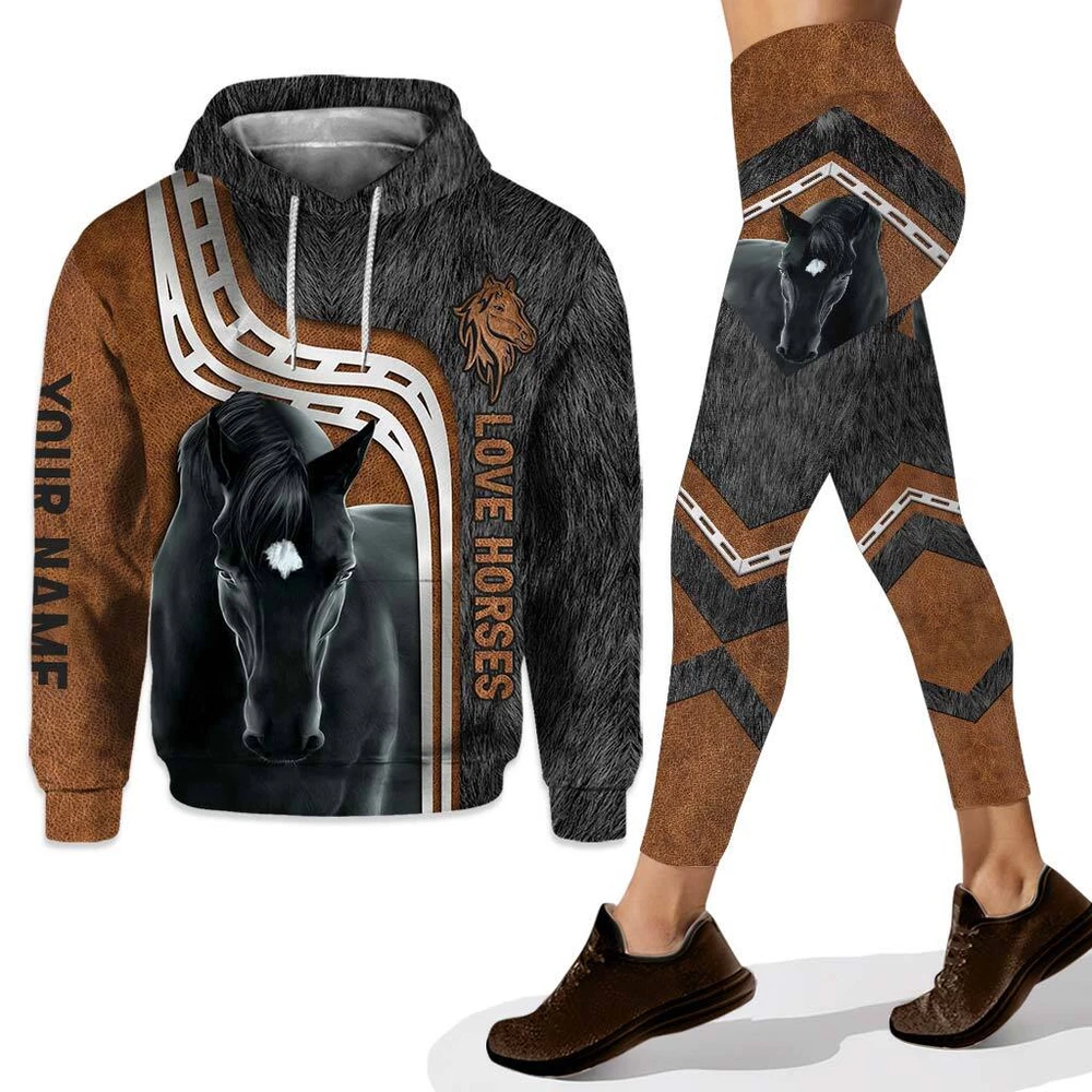 Custom 3D Print Love Horses Hoodie and Leggings for a Personalized Look
