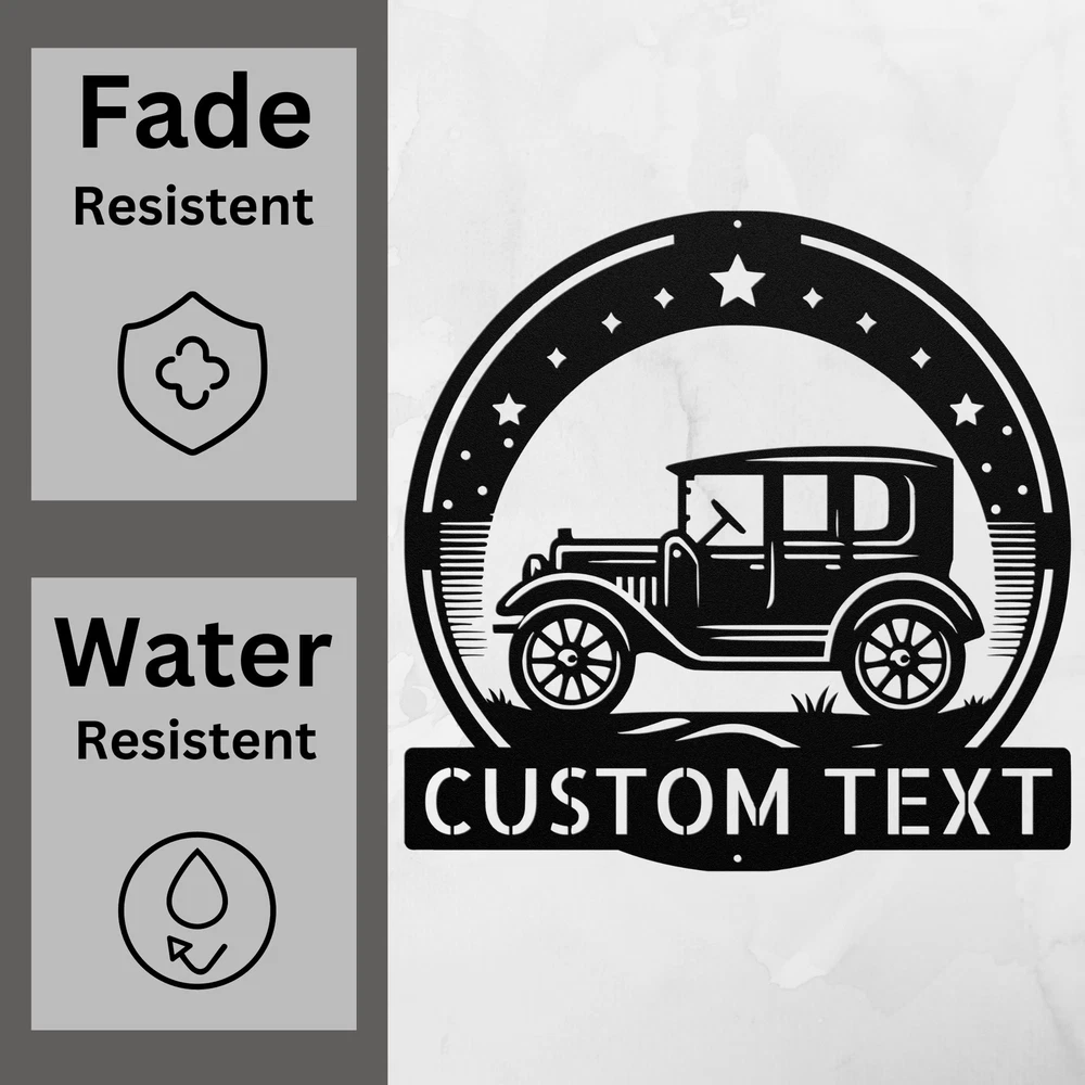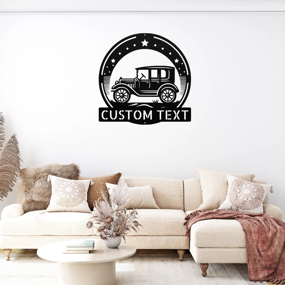 Product Description Custom Ancient Car Metal Sign Vintage Decor Wall Art Gift for Car Lovers Rev up your decor with this Custom Ancient Car Metal Sign ! Made from high-quality 16 gauge metal, this vintage decor piece is perfect for car enthusiasts and adds a classic touch to any space. Its durable powder coating makes it resistant to dust, weather, and water, making it ideal for both indoor and outdoor use. This personalized sign is a fantastic gift for Christmas, birthdays, or any special occasion. Whether you’re celebrating a love for classic cars or looking to enhance your home or office decor, this sign is sure to impress. Key Features: Customizable Design : Personalize with names or initials for a unique touch. High-Quality Material : Crafted from sturdy 16 gauge metal for long-lasting durability. Weather Resistant : Powder-coated finish protects against dust and moisture. Versatile Decor : Suitable for both indoor and outdoor display. Great Gift Idea : Perfect for car lovers or as a unique home decor piece. Celebrate your passion for vintage automobiles with this eye-catching metal sign. It’s more than just decor; it’s a tribute to the beauty and nostalgia of classic cars. Order yours today! Service and Color Choice Our metal signs are designed to be personalized just for you, making them the perfect addition to any space! The default color for our signs is Black , but we also offer a variety of beautiful options including Copper, Gold, White, and Silver . After placing your order, simply contact us with your preferred color choice, and we'll ensure your sign is exactly how you envision it. Let’s create something special together!