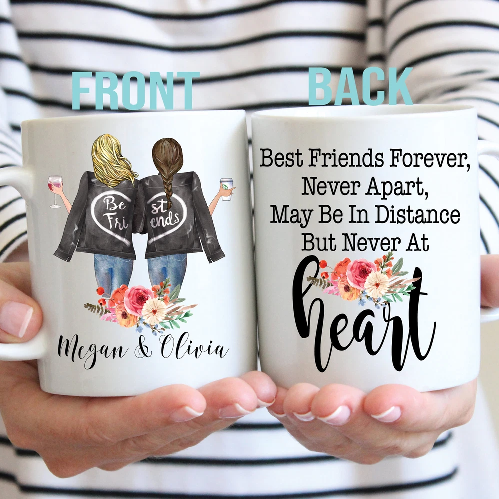 Custom Bestie Gift Custom Bff Mug Moving Away Gift Long Distance Friend Gift Product Details.. This high quality 11oz. ceramic white mug has a premium hard coat that provides crisp and vibrant color reproduction sure to last for years. Perfect for all hot & cold beverages. The highest quality printing possible is used. It will never fade no matter how many times you wash it. Material: 100% Ceramic. Print both sides. Dishwasher and Microwave Safe. High Gloss + Premium White Finish. Printed in the U.S.A. Personalized & Custom. We support personalized and custom mug to add custom, when placing an order, you can add notes to the "order note" in shipping address section. Also you can contact us directly via message. Shipping Info. Ready to ship in 1 to 2 business days, All products are made-to-order and proudly printed in the United States. Shipped by USPS and DHL, You will receive your order in 5-7 days. Replace & Refund. All products are defective during shipping broken, chipped will be replaced free of charge. You are not satisfied with the product, we will refund 100% money to you. If any other issues arise, please do not hesitate to message, we would be more than happy to assist you.
