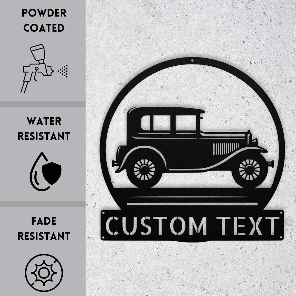 Product Description Custom Classic Car Metal Art Sign Personalized Home Garage Wall Decor Gift Rev up your decor with this Custom Classic Car Metal Art Sign! Made from high-quality 16 gauge metal, this personalized sign is perfect for car enthusiasts and adds a stylish touch to any home or garage. With a durable powder coating, it is dust, weather, and water-resistant, making it ideal for both indoor and outdoor use. This custom metal sign is a fantastic gift for Christmas, birthdays, or any special occasion. Personalize it with your name or favorite car model for a unique piece that showcases your passion for classic cars. Whether you hang it in your garage, man cave, or office, this sign will surely impress. Key Features: Customizable Design: Personalize with your name or favorite car model for a unique touch. Durable Material: Made from sturdy 16 gauge metal for long-lasting use. Weather Resistant: Powder-coated finish protects against dust, moisture, and outdoor elements. Versatile Decor: Ideal for indoor or outdoor spaces, enhancing any environment. Great Gift Idea: A perfect present for Christmas, birthdays, or special occasions for car lovers. Stylish Design: Features a classic car motif that adds character to any space. Bring a classic vibe to your home decor with this Custom Classic Car Metal Art Sign! Service and Color Choice Our metal signs are designed to be personalized just for you, making them the perfect addition to any space! The default color for our signs is Black , but we also offer a variety of beautiful options including Copper, Gold, White, and Silver . After placing your order, simply contact us with your preferred color choice, and we'll ensure your sign is exactly how you envision it. Let’s create something special together!
