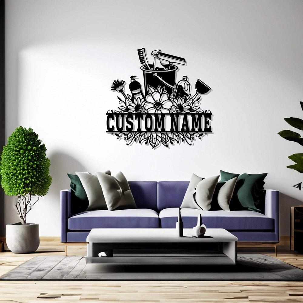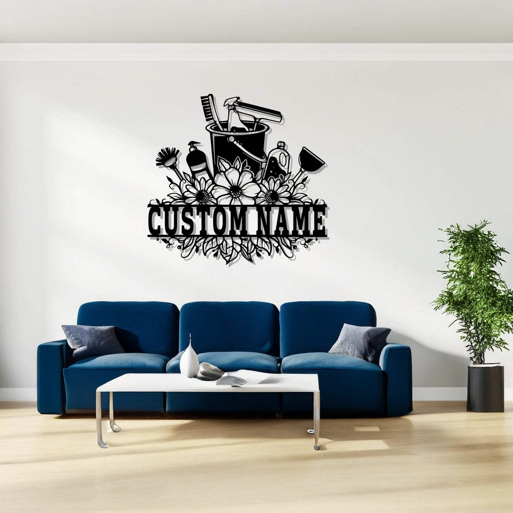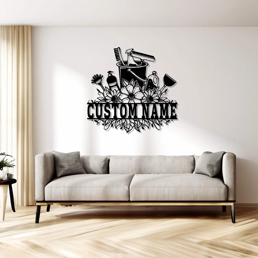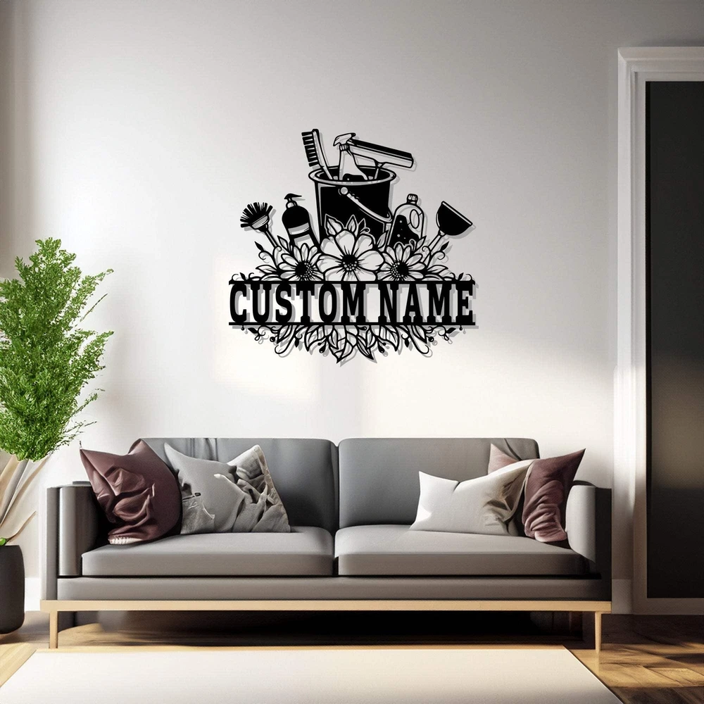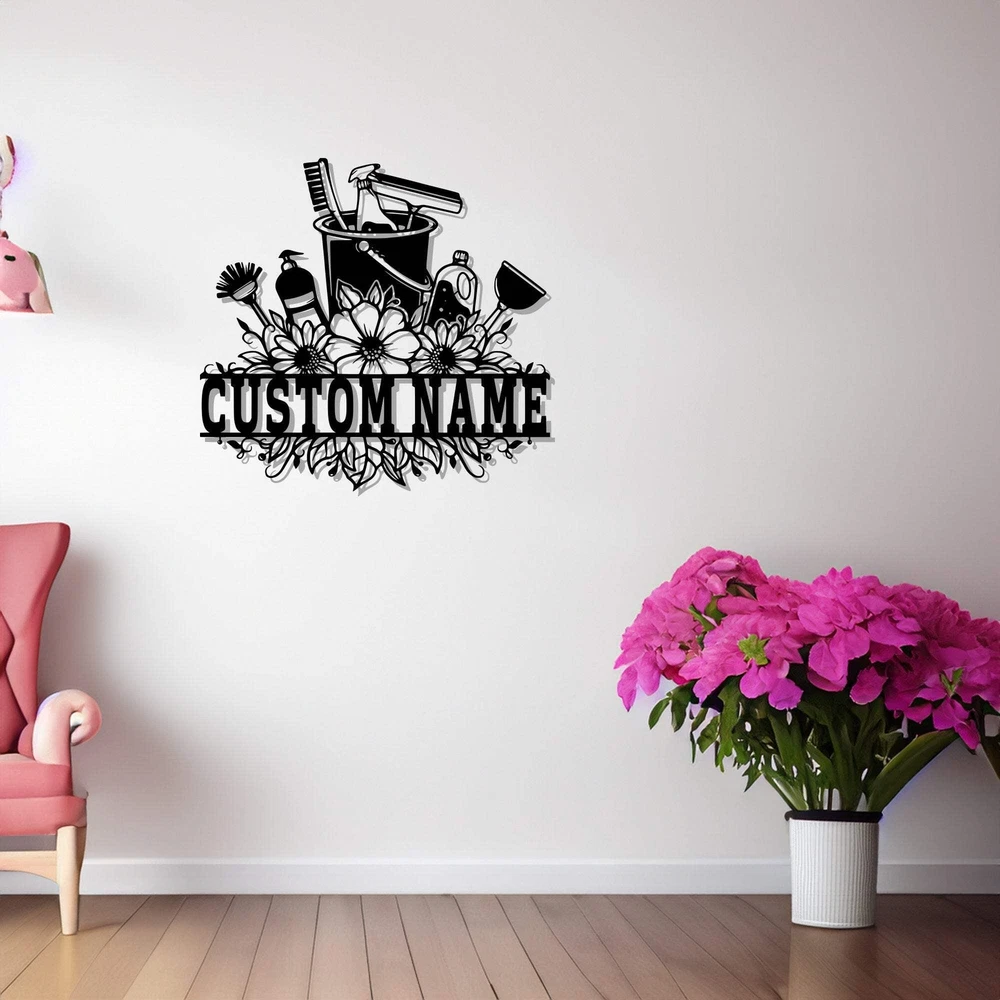Custom Cleaning Tool Frame Metal Wall Art V2 Personalized Cleaner Name Sign Deco