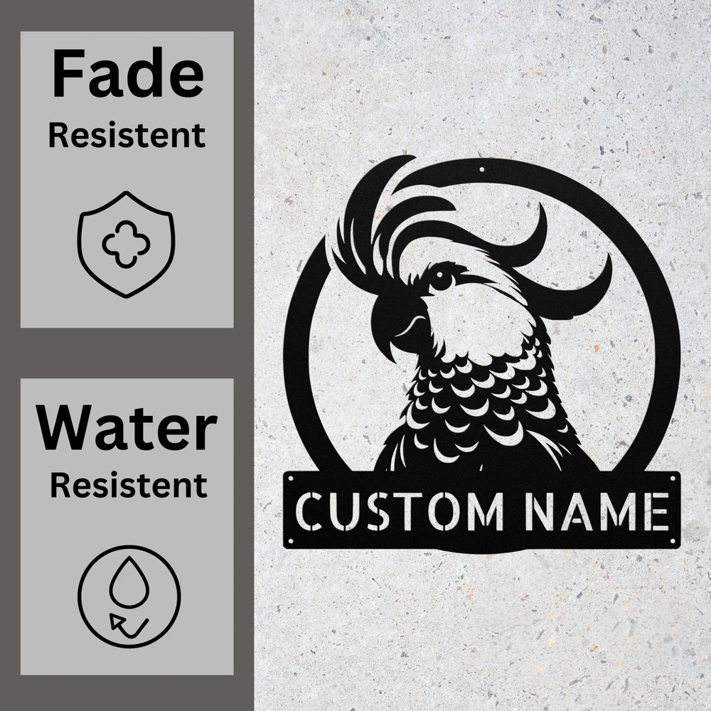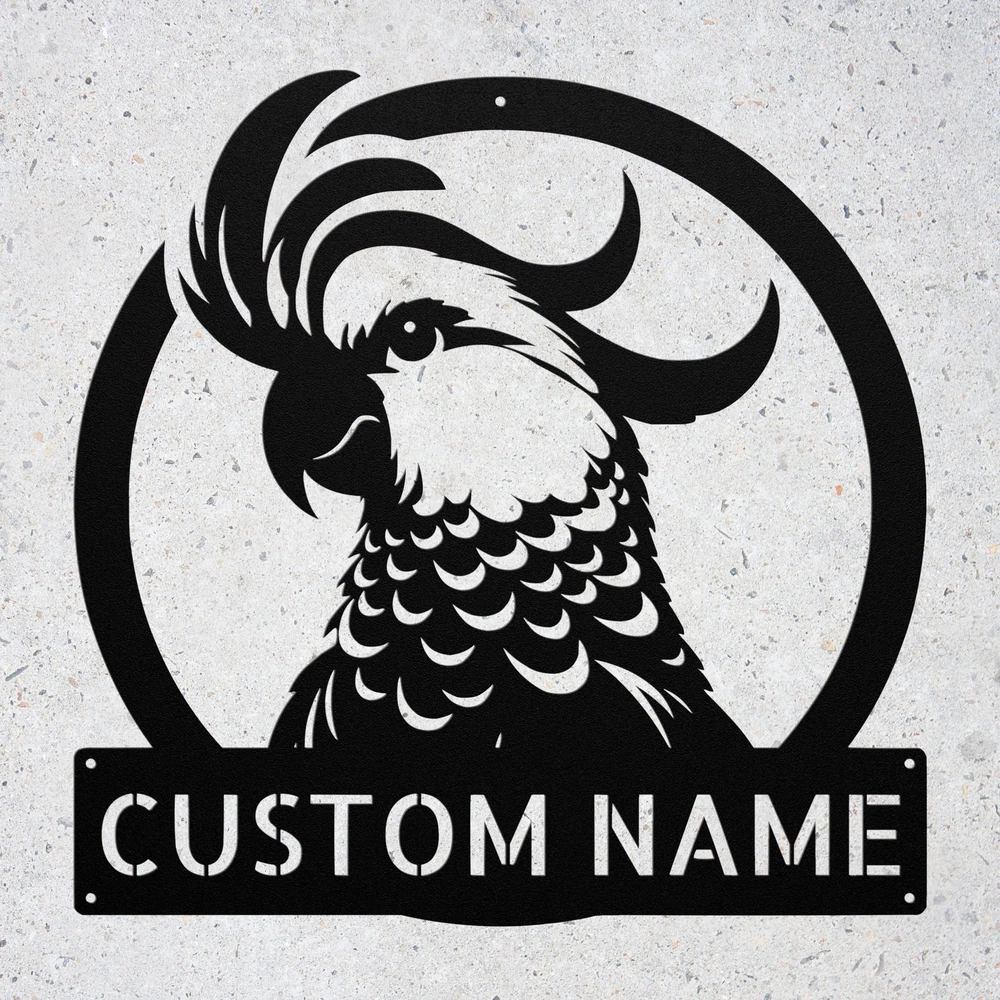 Product Description Custom Cockatoo Sulfur Bird Metal Sign Personalized Wall Art Home Decor Gift Add a touch of charm to your space with this Custom Cockatoo Sulfur Bird Metal Sign . Made from high-quality 16 gauge metal, this personalized wall art is designed for durability and style. With a protective powder coating, it is dust, weather, and water-resistant, making it perfect for both indoor and outdoor use. This metal sign is a fantastic gift idea for Christmas, birthdays, or any special occasion. Whether you’re looking to surprise a loved one or treat yourself, this unique piece of decor will brighten up any home or office. Its vibrant design features a beautiful cockatoo, adding a tropical vibe to your environment. Key Features: Customizable: Personalize with your name or message for a unique touch. Durable Material: Made from sturdy 16 gauge metal for long-lasting appeal. Weather Resistant: Powder-coated finish protects against dust, moisture, and outdoor elements. Versatile Decor: Ideal for both indoor and outdoor spaces, enhancing any setting. Great Gift Choice: Perfect for birthdays, Christmas, or any special occasion. Eye-Catching Design: Features a colorful cockatoo to brighten your home or office. Transform your decor with this beautiful Custom Cockatoo Sulfur Bird Metal Sign! Service and Color Choice Our metal signs are designed to be personalized just for you, making them the perfect addition to any space! The default color for our signs is Black , but we also offer a variety of beautiful options including Copper, Gold, White, and Silver . After placing your order, simply contact us with your preferred color choice, and we'll ensure your sign is exactly how you envision it. Let’s create something special together!