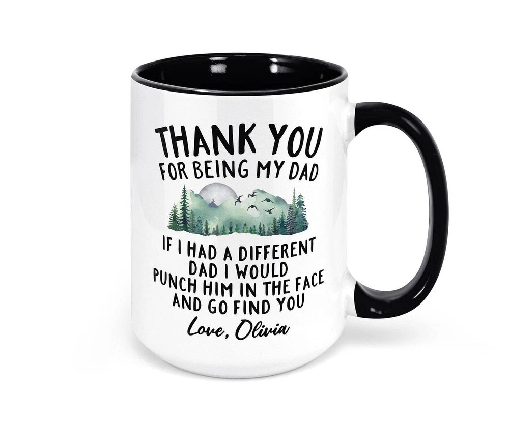 Custom Coffee Mug Thank You For Being My Dad I Would Punch Him In The Face Mug Product Details.. This high quality 11oz. ceramic white mug has a premium hard coat that provides crisp and vibrant color reproduction sure to last for years. Perfect for all hot & cold beverages. The highest quality printing possible is used. It will never fade no matter how many times you wash it. Material: 100% Ceramic. Print both sides. Dishwasher and Microwave Safe. High Gloss + Premium White Finish. Printed in the U.S.A. Personalized & Custom. We support personalized and custom mug to add custom, when placing an order, you can add notes to the "order note" in shipping address section. Also you can contact us directly via message. Shipping Info. Ready to ship in 1 to 2 business days, All products are made-to-order and proudly printed in the United States. Shipped by USPS and DHL, You will receive your order in 5-7 days. Replace & Refund. All products are defective during shipping broken, chipped will be replaced free of charge. You are not satisfied with the product, we will refund 100% money to you. If any other issues arise, please do not hesitate to message, we would be more than happy to assist you.