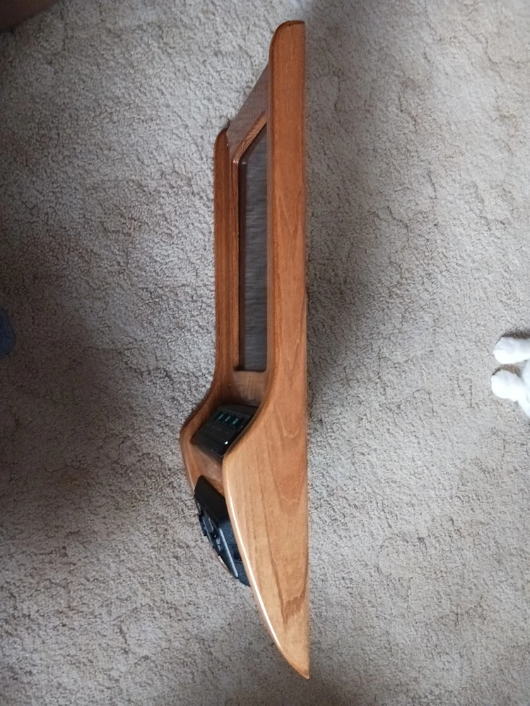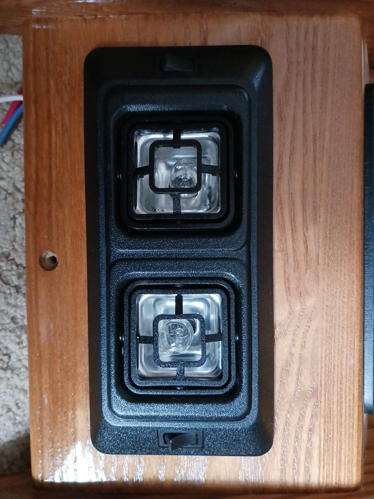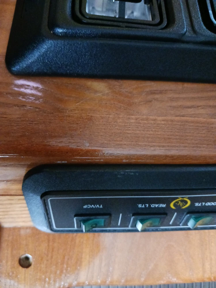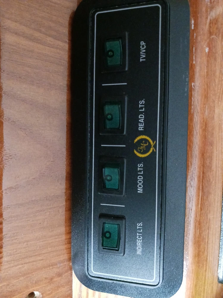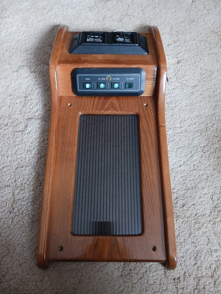 This listing is for an overhead console with tap lights and switches for a custom conversion van. I am unsure what kind of van it is out of. I am also unsure of which conversion company it is from. There is a symbol on the light switch, take a look and draw your own conclusions. It dated 3/2/97 on the back side of it. Lights and switches are untested and unknown if they are functional. There are some scratches in the finish of the wood. This piece may require some cleaning.