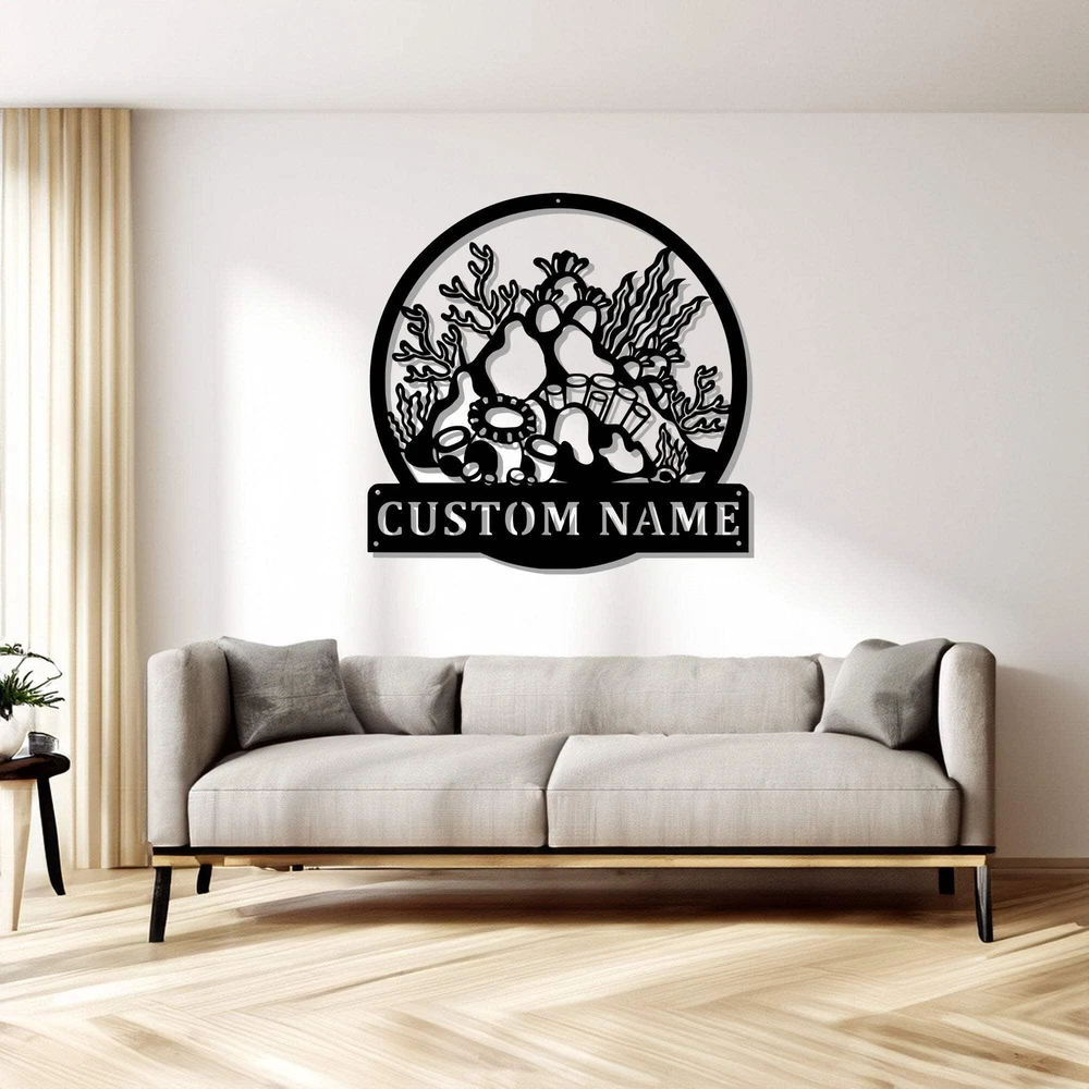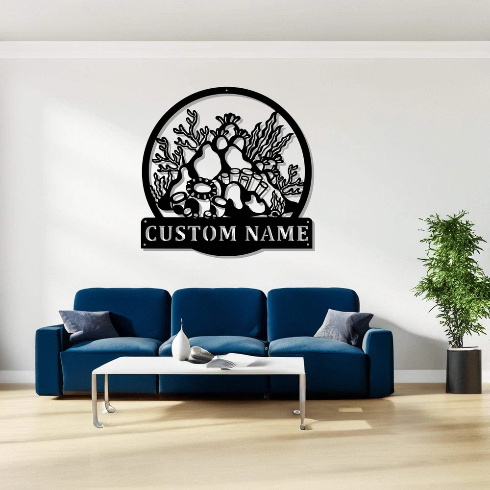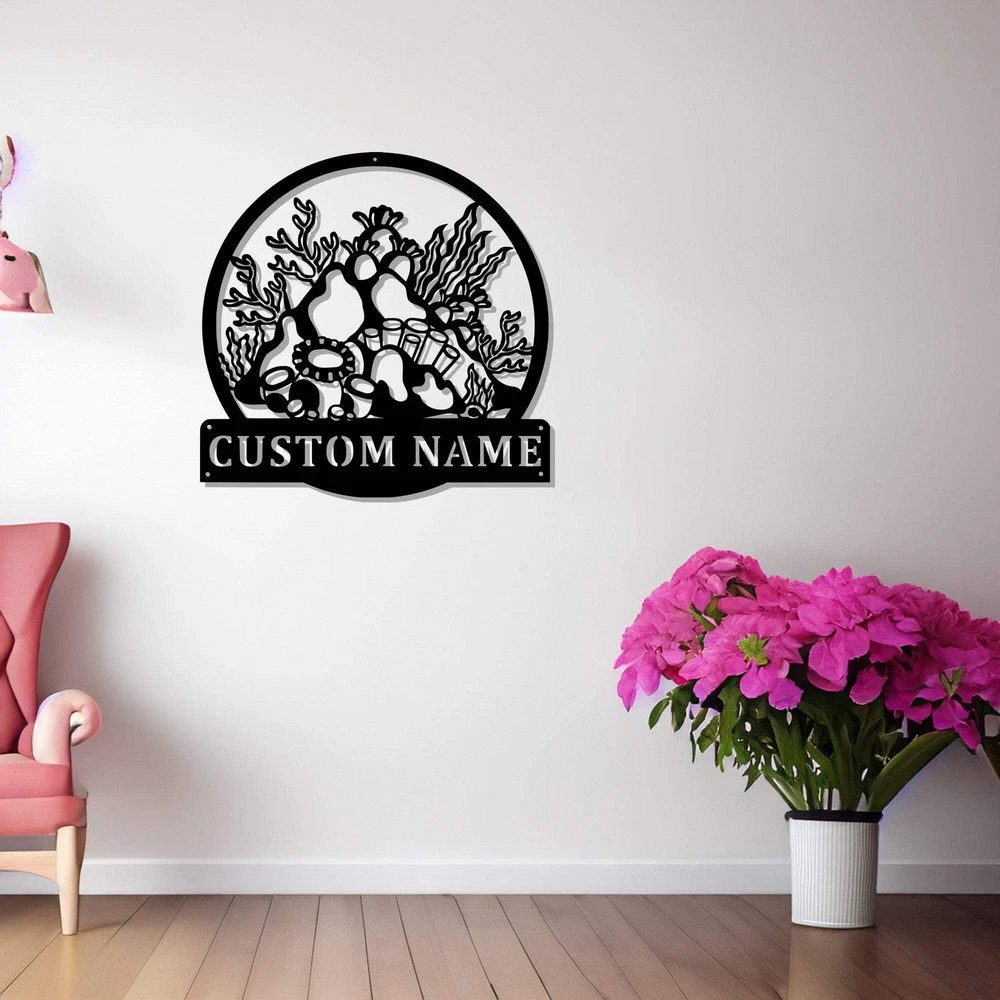 Custom Coral Reef Metal Wall Art Personalized Coral Reef Name Sign Decoration Fo