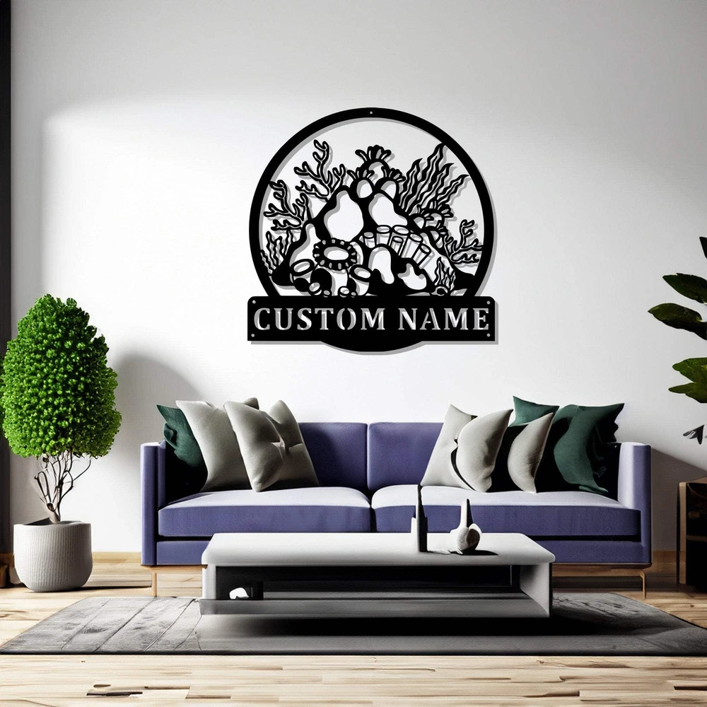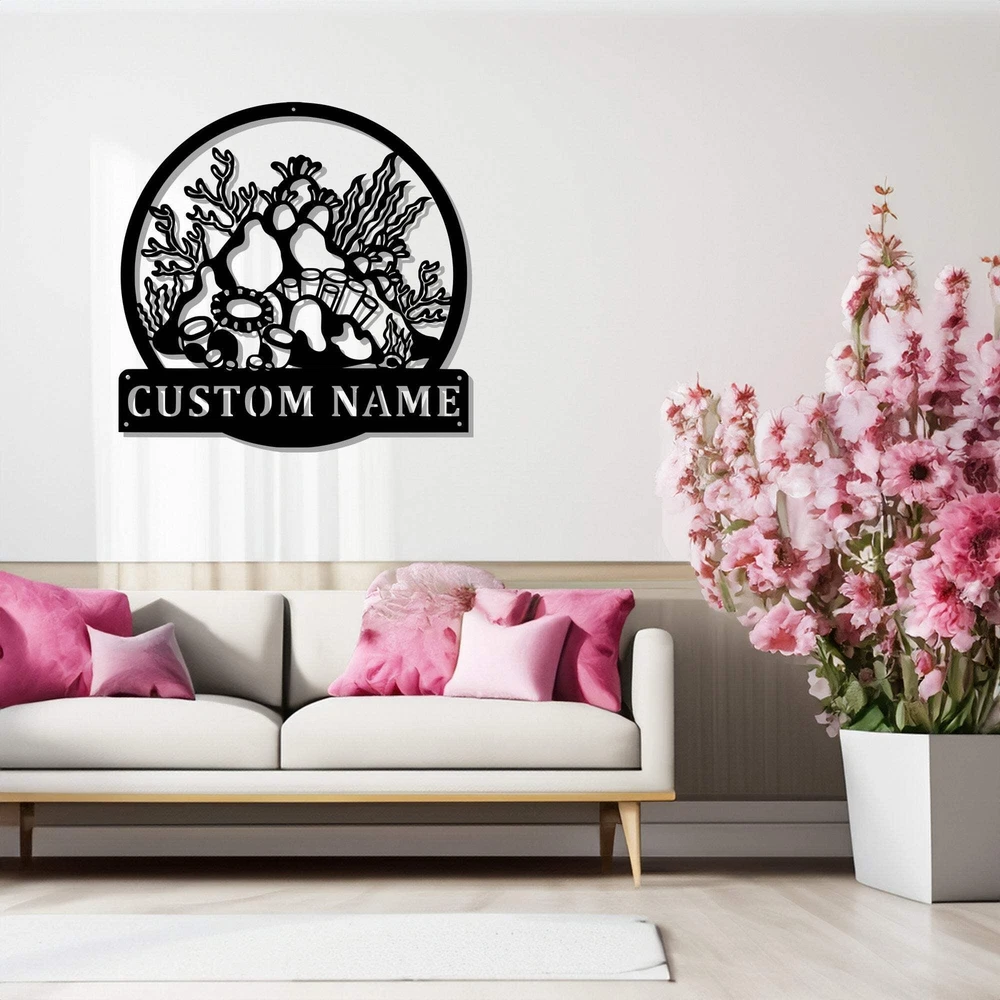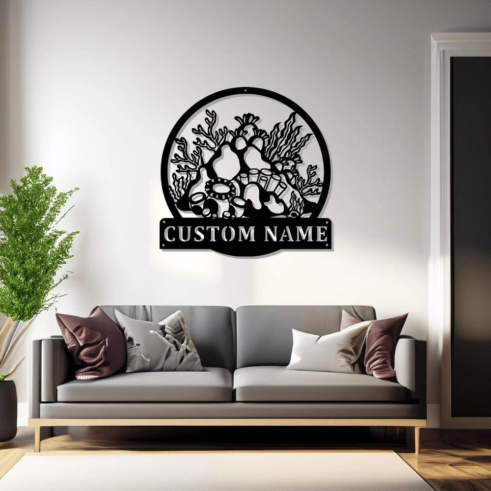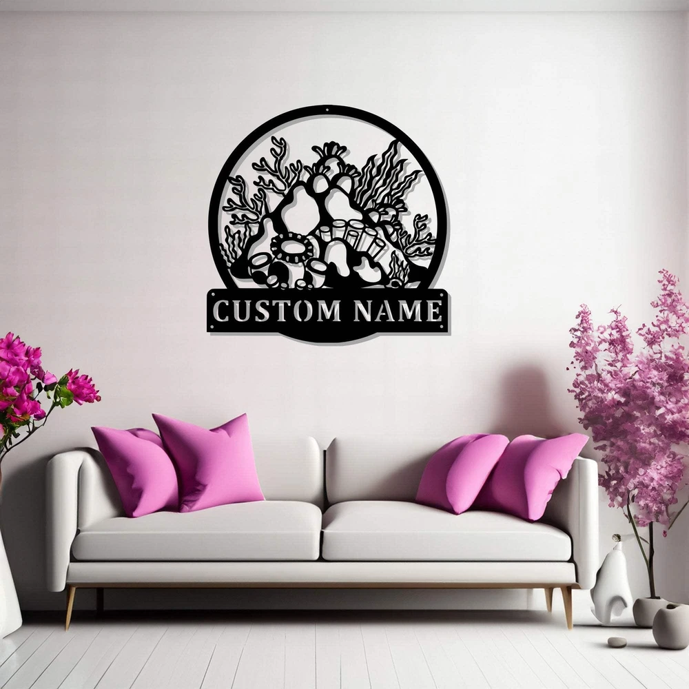 Custom Coral Reef Metal Wall Art Personalized Coral Reef Name Sign Decoration Fo