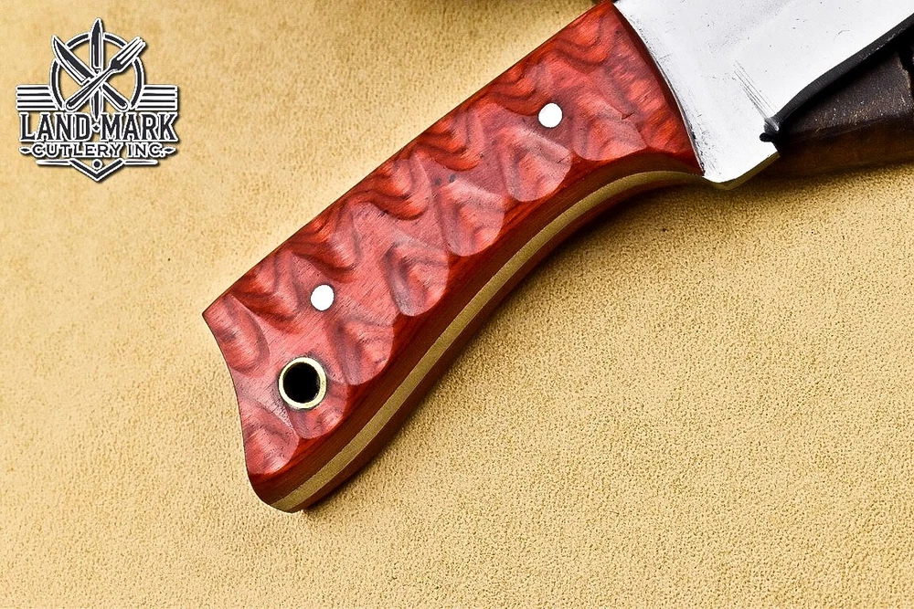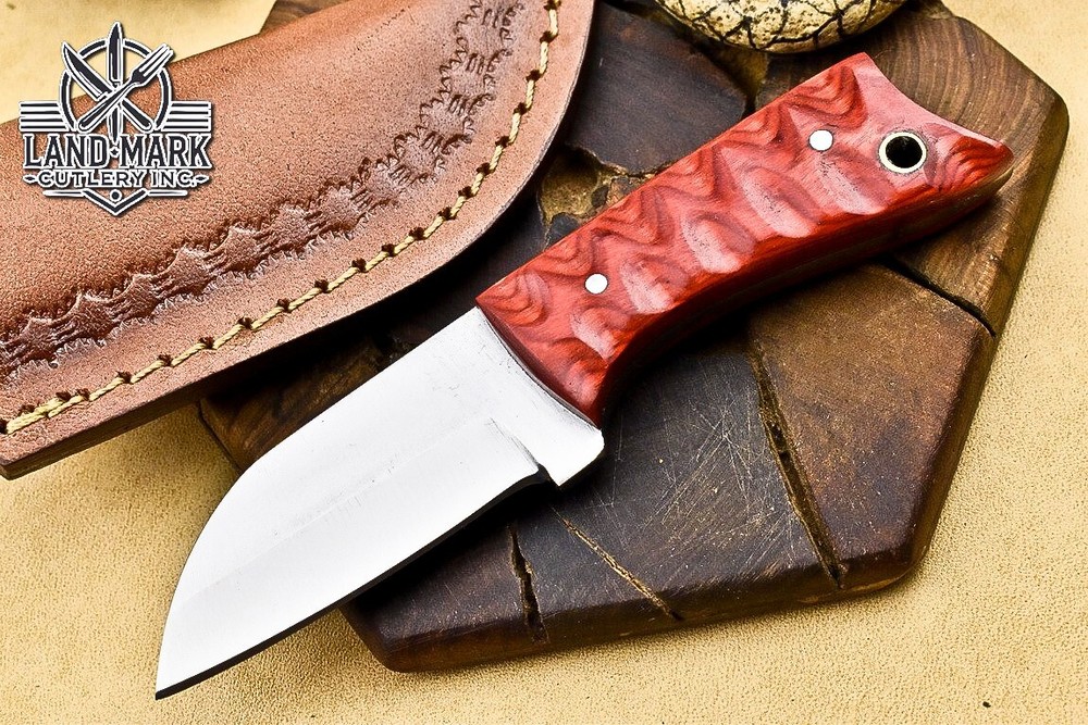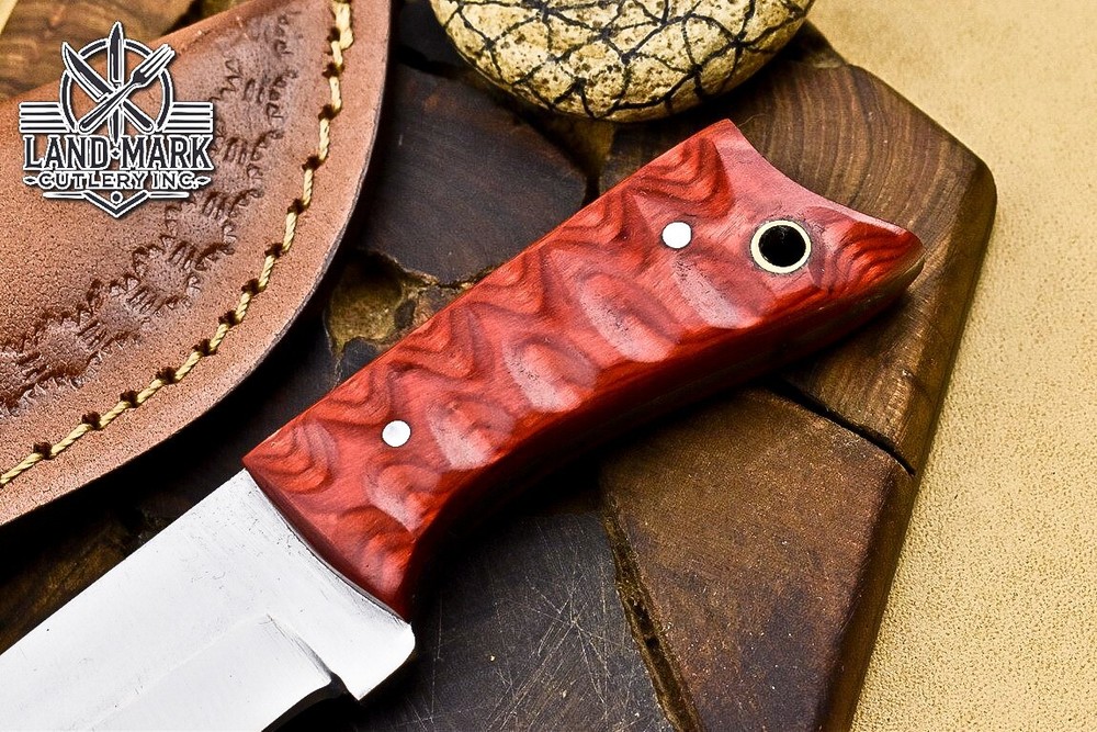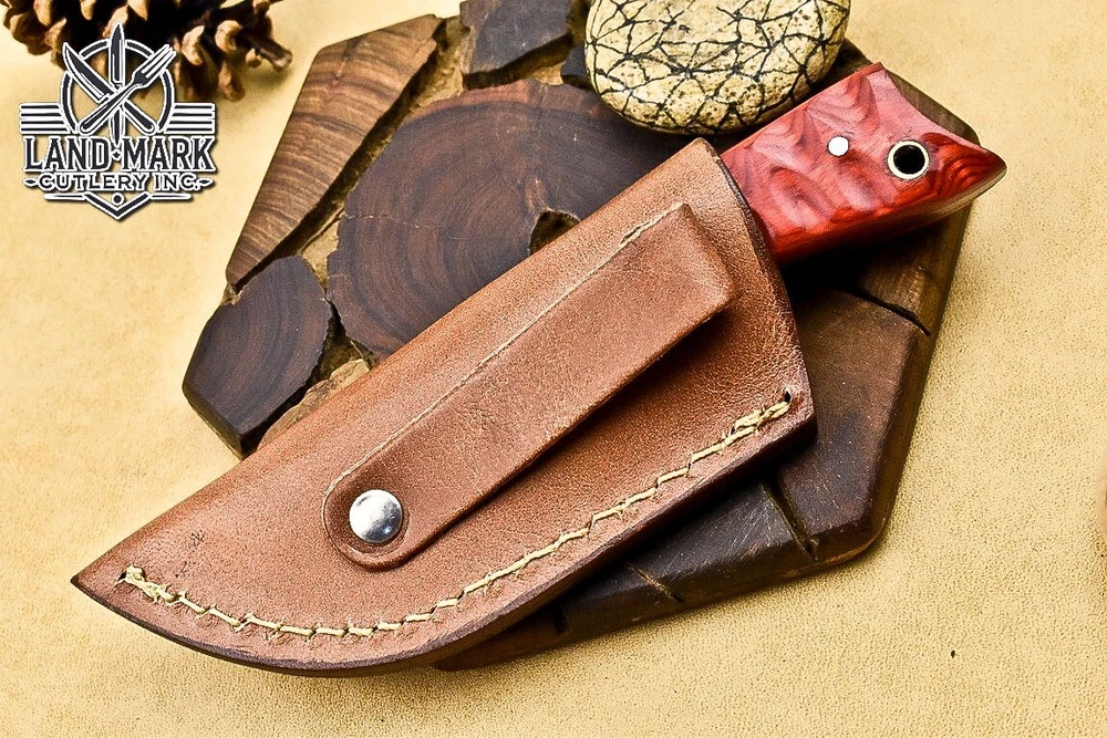 Custom Hand Made D2 STEEL HUNTING KNIFE WITH PAKKA WOOD HANDLE We offer a shipping discount for More then one purchased . And discount will be apply on combine invoice, Discount will not apply on separate payment. ITEM DETAILS OVER ALL LENGTH 3.0 inches long (Approx) HANDLE LENGTH 1.5 inches long (Approx) BLADE LENGTH 1.5 inches long (Approx) BLADE HARDNESS 58-60 HRC Which Holds HANDLE MATERIAL PAKKA WOOD COVER LEATHER SHEATH This Awesome custom made KNIFE has a nice hand forged with the combination of 4340 & 1080 steel. HOW OUR DAMASCUS IS MADE: All our Damascus is real and not just an acid etch. Damascus is a mixture of 1080HC and 4340 nickel carbon. You heat them up together and then fold the bar over and over to get the desired layers, ours are 396 layers. Then you burn the blade in acid, and it turns the nickel satin color and the high carbon turns blackish gray. This is how the layers are exposed to show the layers of the new steel created coined "Damascus". All Damascus is acid etched to show the layers. If you high polish the metal it will be shinny satin like all steels. Only after you burn the sides of the blade with acid do you see the layers of the two steels. Makes sense? After we make our knives we high polish the handles and put an edge on the blade. The high polishing buffs off the acid burned layer of the handle, and the blade edge is sharpened and the acid burned edge becomes satin. You can re-burn the tang of the blade near the handles and the edge of the blade and it will show the layers once more. All our knives are hand made, durable and unique ***** YOU WILL RECEIVED THE SAME KNIFE Qality Standards Our Damascus blades are made from high quality non-stainless steels which rival or exceed any Damascus blade made from the 10 series with 4340. Our Damascus combination has taken years to perfect and has been tested under a variety of application which will offer professional performance in categories of toughness, strength (lateral stress) and edge honing and holding ability. In a 5 spot Rockwell test our blades will average near or close to 58 which offers a perfect balances between its toughness and strength.Our blades due to carbon content need to be regularly treated with wax and/or 3 in 1 oil to maintain its superior quality. Questions if you have any question feel free to send us message we aim to answer all questions within 24 hours Feedback If you are not satisfied with our service please contact us before leaving any negative or natural feedback. We will resolve all issues as quickly as possible. Disclaimer We are not responsible for any injuries associated with the use of our tools. Our products are intended for legal use only by responsible buyers. Therefore, we will not sell our products to anyone under the age of 18. Before bidding please check your country laws as some countries Custom don't allow this. If your purchase is held by Custom Authorities in your country/State we will not be responsible for that and no refund will be issued Shipping We offer a 20% shipping discount for More then one purchased . And discount will be apply on combine invoice, Discount will not apply on separate payment We ship within 24 hours after receiving complete payment but this can be delayed due to week ends or Governments and Religious Festivals . . This is beyond our control and we apologize for this inconvenience. Precautions Our Tools are very sharp so open and use them very carefully We are not responsible for any injuries associated with the use of our tools Tips to Care knife 1. NEVER STORE YOUR KNIFE FOR LONG TIME IN LEATHER SHEATH. 2. LEATHER CAN ABSORB WATER, WHICH WILL RUST THE KNIFE. 3. ALWAYS CLEAN THE BLADE AFTER USING WITH OIL OR WAX