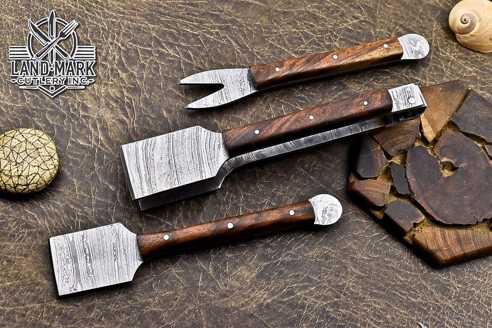 This handmade Damascus steel hunting BBQ set is stunning! The rosewood handle feels smooth and sturdy, while the 12-inch blade stays razor-sharp thanks to its 58-60 HRC hardness. Forged from 4340 and 1080 steel, the intricate Damascus pattern makes it a showstopper. Perfect for outdoorsmen and BBQ lovers who appreciate fine craftsmanship. The shipping discount for multiple purchases is a nice bonus! A true blend of beauty and function.
