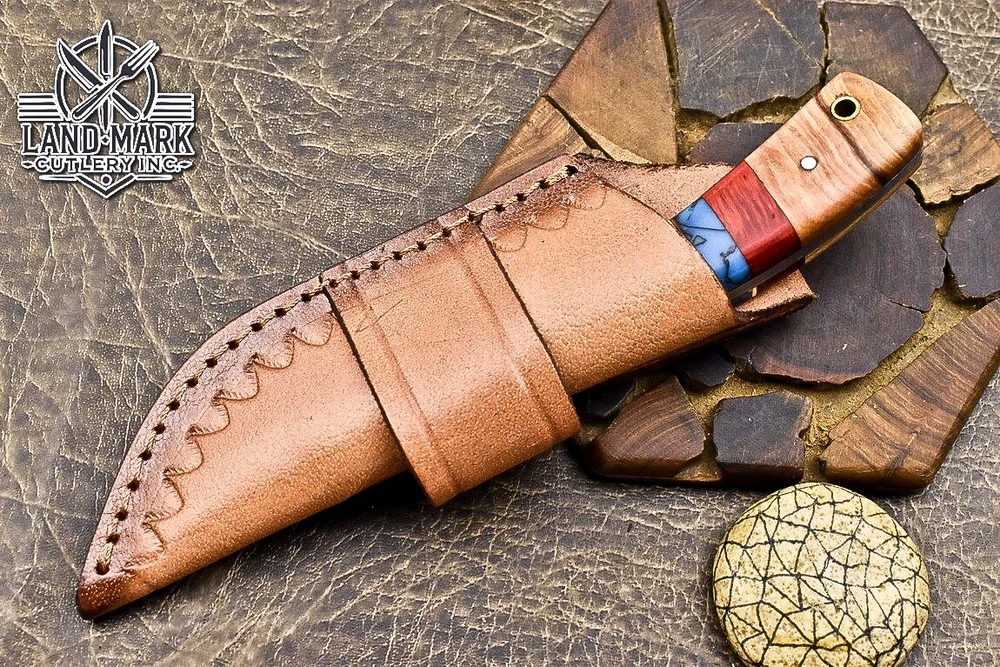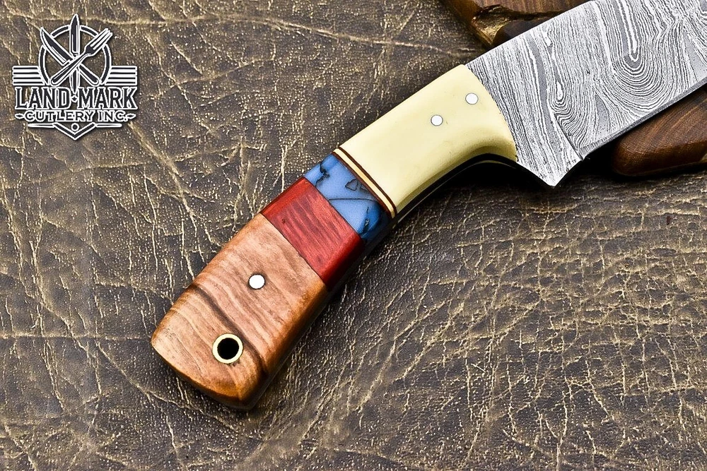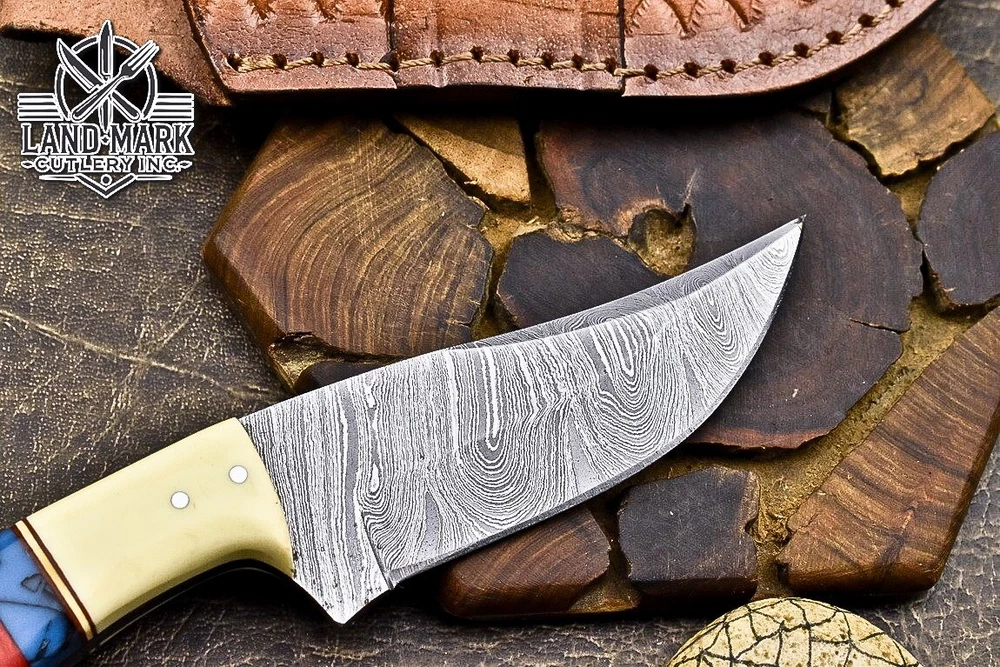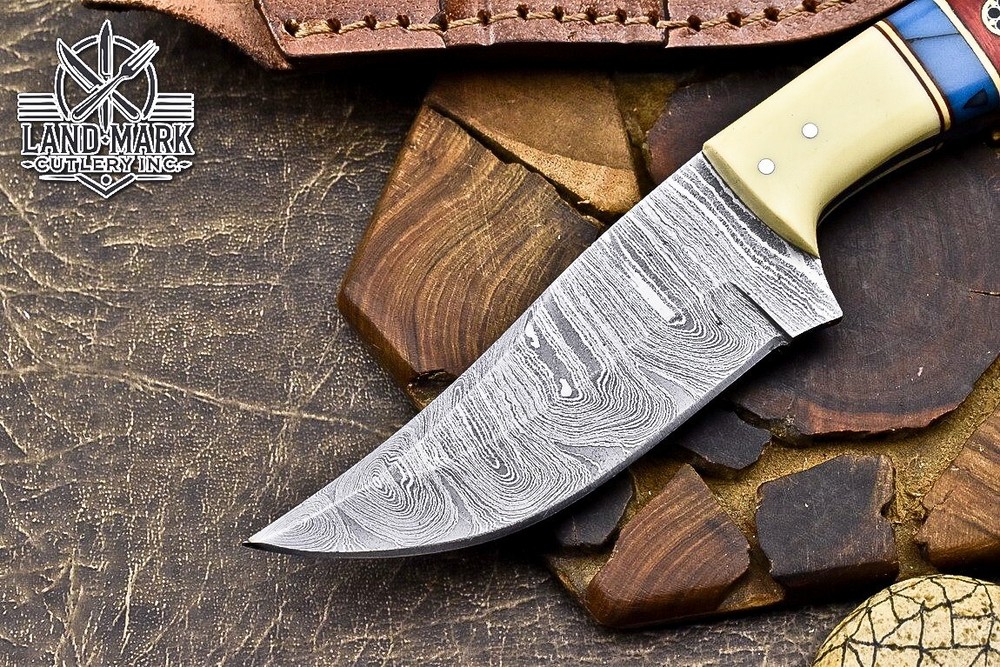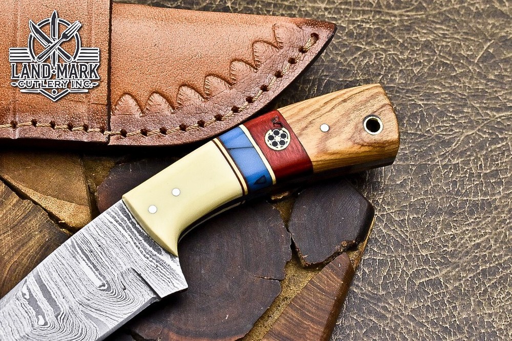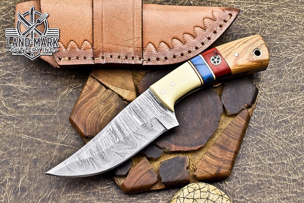 Custom Hand Made DAMASCUS STEEL HUNTING KNIFE WITH ANTIQUE HANDLE We offer a shipping discount for More then one purchased . And discount will be apply on combine invoice, Discount will not apply on separate payment. ITEM DETAILS OVER ALL LENGTH 8.0 inches long (Approx) HANDLE LENGTH 4.0 inches long (Approx) BLADE LENGTH 4.0 inches long (Approx) BLADE HARDNESS 58-60 HRC Which Holds The Sharp Edge For Long Time. HANDLE WOOD AND BONE COVER LEATHER SHEATH This Awesome custom made KNIFE has a nice hand forged with the combination of 4340 & 1080 steel. HOW OUR DAMASCUS IS MADE: All our Damascus is real and not just an acid etch. Damascus is a mixture of 1080HC and 4340 nickel carbon. You heat them up together and then fold the bar over and over to get the desired layers, ours are 396 layers. Then you burn the blade in acid, and it turns the nickel satin color and the high carbon turns blackish gray. This is how the layers are exposed to show the layers of the new steel created coined "Damascus". All Damascus is acid etched to show the layers. If you high polish the metal it will be shinny satin like all steels. Only after you burn the sides of the blade with acid do you see the layers of the two steels. Makes sense? After we make our knives we high polish the handles and put an edge on the blade. The high polishing buffs off the acid burned layer of the handle, and the blade edge is sharpened and the acid burned edge becomes satin. You can re-burn the tang of the blade near the handles and the edge of the blade and it will show the layers once more. All our knives are hand made, durable and unique ***** YOU WILL RECEIVED THE SAME KNIFE Qality Standards Our Damascus blades are made from high quality non-stainless steels which rival or exceed any Damascus blade made from the 10 series with 4340. Our Damascus combination has taken years to perfect and has been tested under a variety of application which will offer professional performance in categories of toughness, strength (lateral stress) and edge honing and holding ability. In a 5 spot Rockwell test our blades will average near or close to 58 which offers a perfect balances between its toughness and strength.Our blades due to carbon content need to be regularly treated with wax and/or 3 in 1 oil to maintain its superior quality. Questions if you have any question feel free to send us message we aim to answer all questions within 24 hours Feedback If you are not satisfied with our service please contact us before leaving any negative or natural feedback. We will resolve all issues as quickly as possible. Disclaimer We are not responsible for any injuries associated with the use of our tools. Our products are intended for legal use only by responsible buyers. Therefore, we will not sell our products to anyone under the age of 18. Before bidding please check your country laws as some countries Custom don't allow this. If your purchase is held by Custom Authorities in your country/State we will not be responsible for that and no refund will be issued Shipping We offer a 20% shipping discount for More then one purchased . And discount will be apply on combine invoice, Discount will not apply on separate payment We ship within 24 hours after receiving complete payment but this can be delayed due to week ends or Governments and Religious Festivals . . This is beyond our control and we apologize for this inconvenience. Precautions Our Tools are very sharp so open and use them very carefully We are not responsible for any injuries associated with the use of our tools Tips to Care knife 1. NEVER STORE YOUR KNIFE FOR LONG TIME IN LEATHER SHEATH. 2. LEATHER CAN ABSORB WATER, WHICH WILL RUST THE KNIFE. 3. ALWAYS CLEAN THE BLADE AFTER USING WITH OIL OR WAX