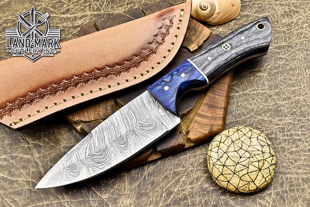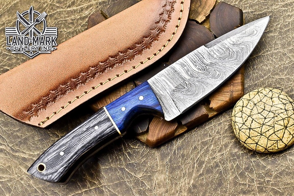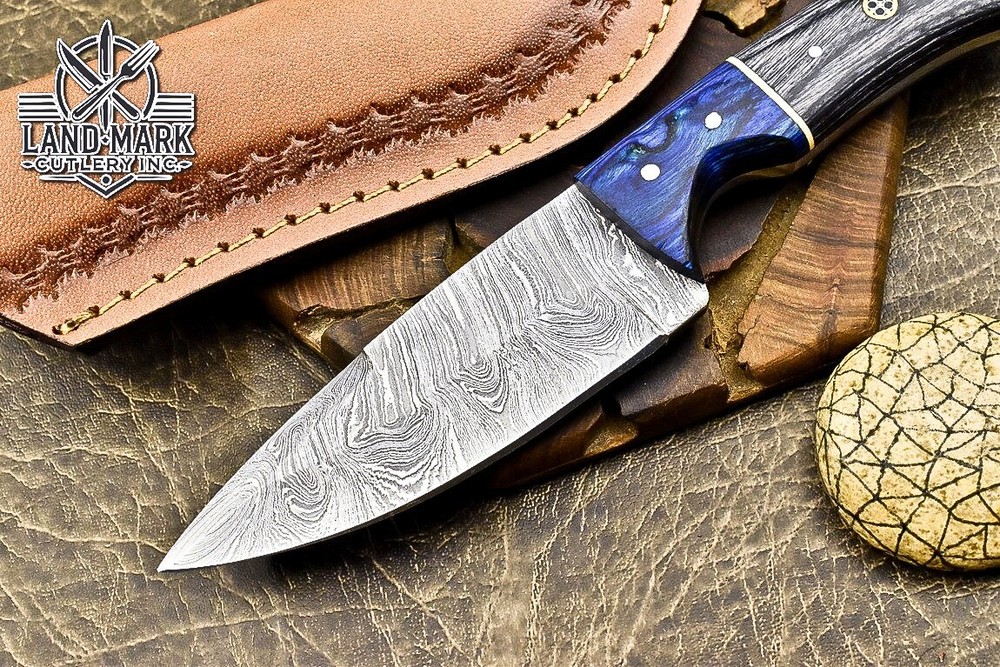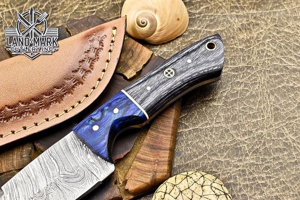 Custom Damascus Steel Hunting Skinner Knife with Pakka Wood Handle