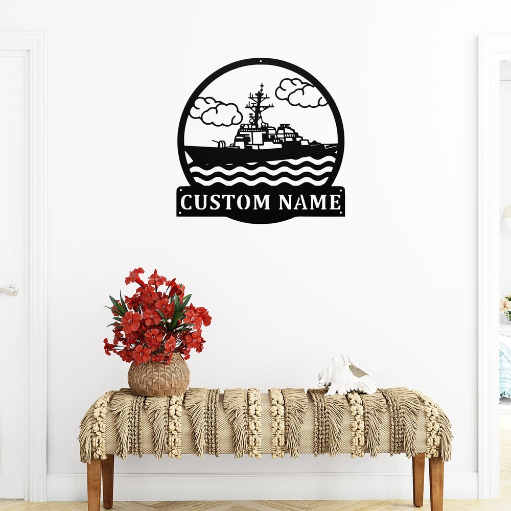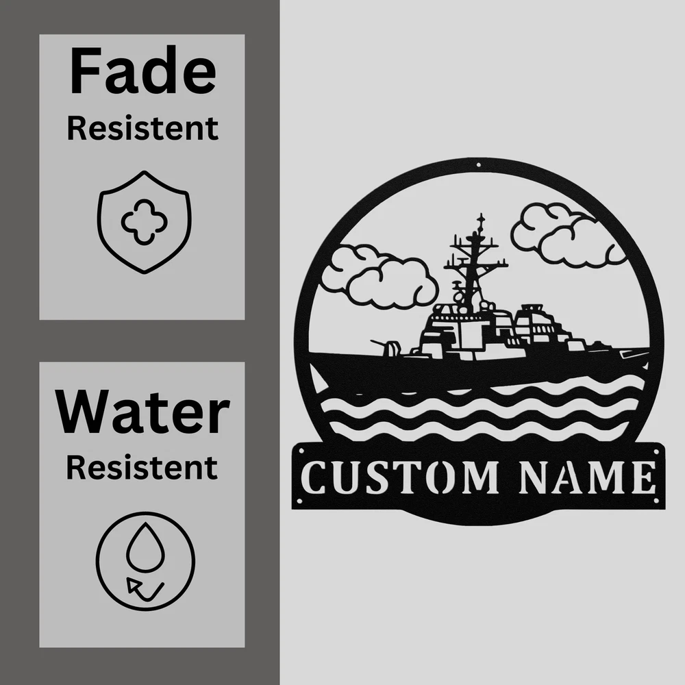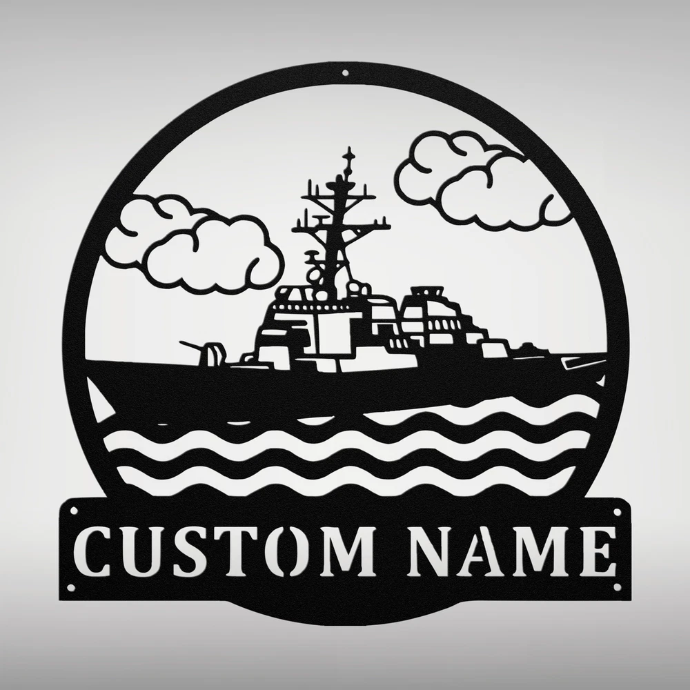 Product Description Custom Destroyer Ship Metal Wall Art Sign Personalized Home Office Decor Signs Bring a touch of maritime charm to your space with our Custom Destroyer Ship Metal Sign . Made from high-quality 16 gauge metal, this sign is designed to last. The powder-coated finish provides excellent protection against dust, weather, and water, making it perfect for both indoor and outdoor use. This personalized sign showcases a detailed design of a destroyer ship and can be customized with your name or a special message, adding a unique touch to your home or office. Whether you’re a naval enthusiast or looking for a thoughtful gift, this sign is a fantastic choice. Ideal for Christmas, birthdays, or any special occasion, the Custom Destroyer Ship Metal Sign makes a great gift for family, friends, or colleagues who appreciate nautical themes. Key Features: Personalized Design: Customize with your name or special text for a unique touch. Durable Construction: Crafted from sturdy 16 gauge metal for long-lasting durability. Weather-Resistant: Powder-coated finish protects against dust, weather, and moisture. Versatile Decoration: Perfect for home, office, garage, or outdoor spaces. Great Gift Idea: A thoughtful gift for maritime lovers or anyone who enjoys nautical decor. Enhance your decor with the Custom Destroyer Ship Metal Sign , a perfect blend of style and personalization that celebrates the spirit of the sea! Service and Color Choice Our metal signs are designed to be personalized just for you, making them the perfect addition to any space! The default color for our signs is Black , but we also offer a variety of beautiful options including Copper, Gold, White, and Silver . After placing your order, simply contact us with your preferred color choice, and we'll ensure your sign is exactly how you envision it. Let’s create something special together!