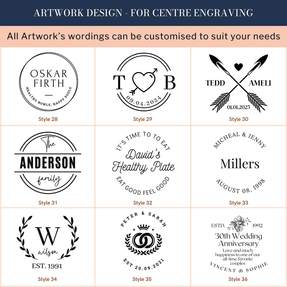 Custom Engraved Enamel Camping Retro Plate Custom Engraved Enamel Camping Retro Plate DETAILS ★ Discover the Perfect Enamel Plates: Ideal for both indoor and outdoor dining: Enjoy your favourite meals with our distinctive Enamel Plates. Whether it's a personalised plate that brings a traditional style to your table or an adventurer's enamel plate perfect for camping and picnics, these plates are a must-have. They make a wonderful gift for the adventurer in the family or any friend who loves the outdoors! Perfect for hiking trips, camping weekends, lazy beach days, and picnics, these plates add a unique touch to your table setting. ★ Retro Charm and Timeless Design - Our Enamel Plates feature a classic blue and white finish reminiscent of American diners, adding a nostalgic touch that guests will love. - The retro blue and white enamel design not only enhances the aesthetic appeal but also makes a statement on any table. The blue rim creates a unique look and makes it easy for people to identify the edge of the plate, ideal for care homes or those with vision difficulties. ★ Perfect for Any Dessert & Food: Ideal for both indoor and outdoor dining, these plates available in two sizes, 24.5 cm and 30 cm, provide a stylish means of serving cold meats, steak, sandwiches, BBQ, cheese, pasta, puddings, desserts, homemade cakes, , pancakes, waffles, sweet treats, breakfast, and more. ★ Timeless Design: The retro blue and white enamel design not only enhances aesthetic appeal but also makes a statement on any table, elevating the presentation of your food. The blue rim creates a unique look and makes it easy for people to identify the edge of the plate, ideal for care homes or those with vision difficulties. ★ Durable and Long-Lasting: Crafted from heavy-duty stainless steel and covered with an ultra-durable, fuséd-glass coating, these plates develop a unique character over time. The enamel coating is heat and chemical resistant, making these plates highly versatile. They are safe for use in the oven and microwave for reheating food and can be easily cleaned in the dishwasher. The stainless-steel interior ensures long-lasting durability, even in customer-facing environments. ★ Exceptional Versatility: The enamel coating on these plates is both heat and chemical resistant, allowing you to serve homemade ice cream directly from the freezer or bake a delicious apple crumble in the oven. These bowls can handle it all. ★ Personalisation Options: Personalise your Enamel Kitchenware with initials, a name, or a custom logo to create a unique, personalised piece that reflects your style and identity. They make exceptional gifts for kids, Father’s Day, Mother’s Day, teachers, wedding favours, birthdays, housewarmings, couples, and any occasion where a thoughtful touch is appreciated. Choose from a wide range of designs to find the perfect match. ★ Ideal for Various Settings: Designed to withstand the rigours of everyday use, cleaning, and storage, our Enamel Tableware are equally at home in commercial settings like restaurants, cafes, and hotels. Their durability ensures they maintain a fresh appearance even with frequent use. It can be safely uséd it in the oven and microwave when reheating drinks. ★ Corporate Gifting and Promotions: Enhance your business relationships by personalising Enamel Plates with client names, monograms, or company logos. They make memorable closing gifts or promotional items that leave a lasting impression. ★ Stylish: Choose from a wide range of design options to personalise your plate, ensuring it reflects your unique style. ★ Safe: BPA-free and crafted with quality materials, our enamel tableware are designed with your safety and satisfaction in mind. ★ Care Instructions: - Our enamel tableware can be washed in the dishwasher, ensuring quick and convenient cleaning. The classic retro blue and white enamel tableware gains a unique character with repeated use, as chips and imperfections contribute to its individual charm. - To maintain a flawless appearance, avoid using the dishwasher. Clean gently with non-abrasive cleaners and avoid scourers to preserve the enamel finish. SPECIFICATIONS Dimensions : Available in 2 Sizes: - Medium: H x D: 25 x 245 mm ( 0.98" x 9.65" ) - Large: H x D: 25 x 300 mm ( 0.98" x 11.81" ) Material: Enamel Steel, Fuséd Glass Coating Technique: Laser Engraved. Personalise any design with names, dates, templates, logos, or images. Our high-quality, long-lasting laser engraving surpasses vinyl stickers, ensuring durability and a professional finish. Note: Chips and imperfections are part of products' individual look. HOW TO ORDER 1. Choose your preferred size: Select whether you want Medium or Large size 2. Choose your Engraving Side: Select whether you want engraving on the top or bottom rim, the centre of the plate, or both. 3. Type in Engraving Style and Order: Specify the engraving style and the exact text you want engraved based on our provided Design Template Options. You can add any additional instructions in brackets (). Please refer to Style #A - Style #R for the Plate Rim's Engraving Example: - Top Rim: Style #O: Timothy Harrington - Bottom Rim: Style #O: Amelia Harrington - Centre: Style #9: mr&mrs Harrington, 05th May 2025 ▸If you want to use your own logo, please attach/ send us your file once you finish . Please note to attach the highest resolution file as possible to avoid quality issues Not all files are scanned prior to manufacturing, if you're not sure, please send us an email after placing the order to confirm if the file is of an acceptable quality. ▸You can combine or pick any font, icon, style, etc between our provided designs, or choose not to include a date, title or icon for example. All artwork based on our available design is free of charge. ▸If you don't like any of our template and want to create your own bespoke artwork design, please feel free to contact us with any questions you may have,