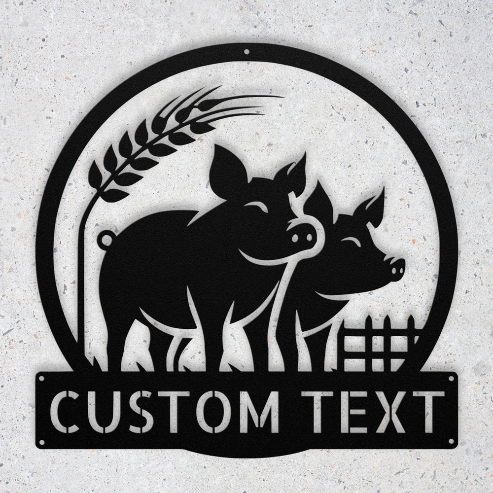 Product Description Custom Farmhouse Pigs Metal Sign Rustic Home Decor Personalized Farm Sign Gift Add a charming touch to your space with our Custom Farmhouse Pigs Metal Sign ! This rustic home decor piece is perfect for farm lovers and adds a warm, welcoming vibe to any room. Made from high-quality 16-gauge metal, this sign is designed to withstand the elements with its durable powder coating, making it both dust and weather resistant. Whether you’re looking for a unique gift for Christmas, a birthday, or any special occasion, this personalized farm sign is a thoughtful choice. It’s also great for decorating your own home or office, showcasing your love for the farm life. Key Features: Customizable Design : Personalize the sign with your name or a special message. Durable Material : Crafted from 16-gauge high-quality metal for long-lasting use. Weather-Resistant : Powder-coated finish protects against dust, rain, and rust. Versatile Use : Suitable for both indoor and outdoor display. Perfect Gift : A unique and heartfelt present for any farm or animal lover. Bring a touch of rustic charm to your decor or surprise a loved one with this delightful metal sign. Order yours today and make your space truly special! Service and Color Choice Our metal signs are designed to be personalized just for you, making them the perfect addition to any space! The default color for our signs is Black , but we also offer a variety of beautiful options including Copper, Gold, White, and Silver . After placing your order, simply contact us with your preferred color choice, and we'll ensure your sign is exactly how you envision it. Let’s create something special together!
