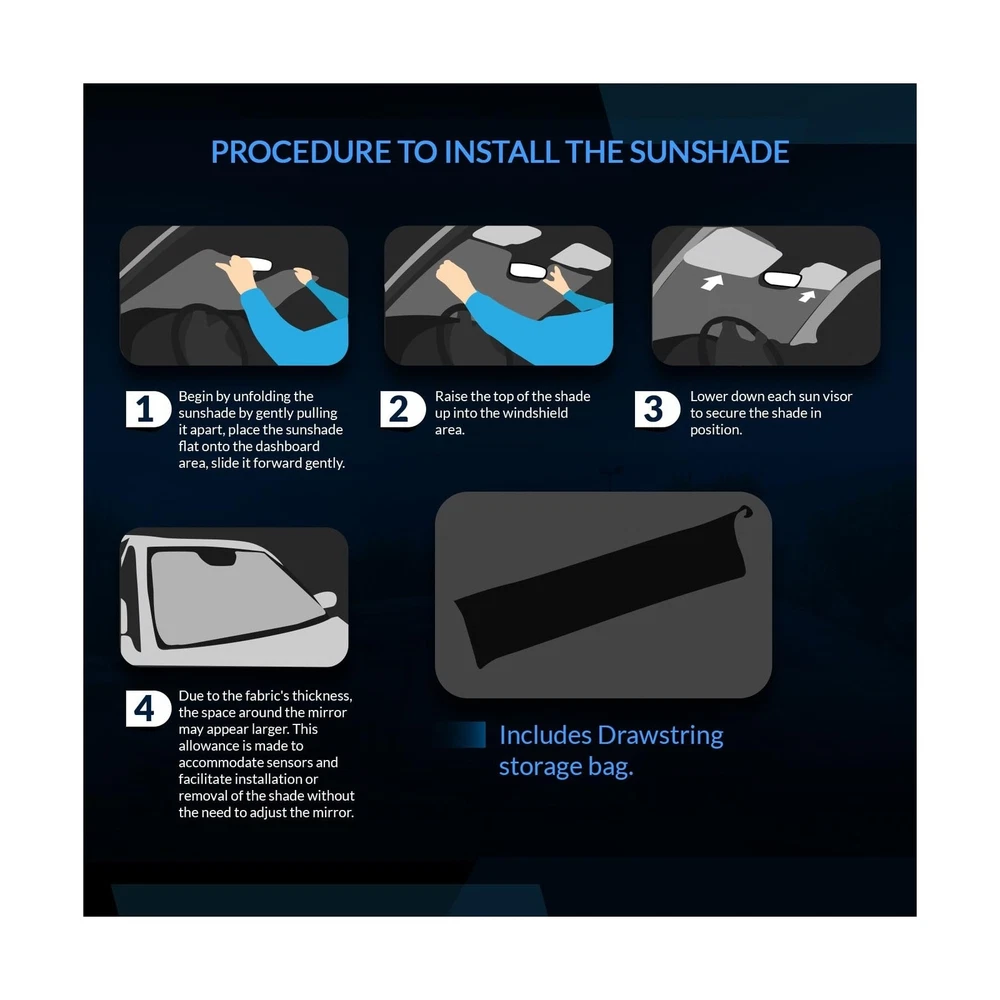 Custom Fit Car Sun Shade Windshield | Sun Visor | Car Window Shades | Fold Up Front Sunshade Visor | Compatible With Toyota RAV4 2013-2018 | CFS-332-S | Silver & Grey 1-pc Set Description Features: Custom Fit & Stays Up Windshield Sun Shade: Designed Specifically For & Compatible With Toyota RAV4 2013-2018 To Ensure The Best Secure Fit. Built-in Support Boards Prevent Drooping Or Sagging. No More Struggling With Universal Car Window Shades! Blocks Heat & Sun: Made With Reflective Mylar Film (Silver Front) And Insulating Felt (Gray Back) To Keep Your Parked Car Cooler. Blocks Harmful Uv Rays And Reduces Interior Temperature Significantly, By Up To 30f. Keeping Your Car Cooler And Protecting Upholstery. Enhanced Privacy & Security And Protects Interior: Provides Shade And Privacy For Passengers And Belongings, Giving You Peace Of Mind. Shields Dashboard, Steering Wheel, And Car Seats From Sun Damage And Heat Buildup. Easy Installation & Removal: Pops Up In Seconds For Quick Use And Folds Away For Convenient Storage In The Trunk Or Glove Compartment. No Tools Or Assembly Required. Must Haves Essentials Auto Accessories Car Sun Shade Premium Materials Car Windshield Sun Shade: Constructed With High-quality, Durable Reflective Mylar Film (silver Front) And Insulating Felt (gray Back) Materials For Long-lasting Performance. Product Details: Brand: Tuningpros Color: Silver Product Dimensions: 55.8"L x 28.5"W Closure Type: Roll Up Vehicle Fitment Note: Compatible With Toyota RAV4 2013-2018 Brand: Tuningpros Color: Silver Product Dimensions: 55.8"L x 28.5"W Closure Type: Roll Up Vehicle Fitment Note: Compatible With Toyota RAV4 2013-2018 Manufacturer: TuningPros Item Weight: 1.95 pounds Manufacturer Part Number: CFS-332-S Date First Available: July 10, 2019 Delivery We Do Not Ship Outside of the Continental US. Return Policy All items qualify for returns within 30 days of receipt. Buyer is responsible for return shipping on any item that is not damaged. Feedback We take our reputation seriously, we buy and sell online, so we understand the value of trust. If you are unsatisfied with your order, please contact us and we will work with you to resolve it to your satisfaction.