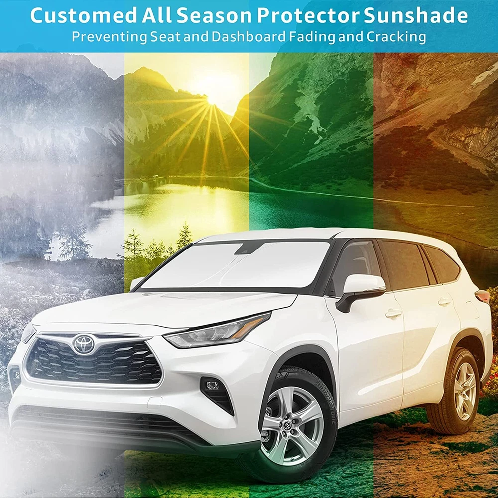 Custom Fit Toyota Highlander Car Windshield Sun Shade UV Block Cover Protector Feature Custom Fit —— Perfectly fit for 2001-2023 Toyota Highlander .Highly precision model design,fits the edges exactly and just put it in your car windshield window.According to the car size design,100% fit your car and does not need to trim. Excellent Material —— High-Quality materials make your product durable. The fabric is a high-quality fabric that blocks and reflects heat, harmful UV rays and sunlight, while being less prone to wrinkling. Reinforced steel bezel provides better durability, ensuring a longer and safer life. Upgraded Design —— Unlike other products on the market, we use a double layer of heat shield fabric to keep out the sun. The first layer is premium 210T reflective polyester and the second layer is high-quality fabric. Double insulation, and double protection.The best shade and insulation on the market. Keeps Cool —— Made of premium 210T reflective polyester to reduce heat buildup up to 40°F, it will block 99% of damaging UV rays. Keep your car cooler. Easy to use and store —— The shade can be easily popped up and folded in seconds for everyday use. You can easily tuck the sunshade into your door pocket. Fitment Fit for Toyota For Toyota Highlander 2001-2023 Specification Product Name: Car sunshade Suitable for: Front Windshield Material: High quality nylon with foldable metal frame Color:Black +Silver Tone Size: Fit for Toyota Highlander 2001-2023 Net Weight:180g Package Included 1 X Car Front Windshield Sunshade 1 X Sunshade Storage bag Payment We can accept payment of Paypal only. Payment should be made within 7 days after purchasing. (No payment orders eBay system will automatically open unpaid dispute, and this is not good to your account.) Shipping Item will be shipped out within 48 hours upon receipt of your cleared payment. We can not ship on Sundays and other public holidays. International Buyers Please Note: 1, Import duties, taxes and charges are not included in the item price or shipping charges. These charges are the buyer's responsibility. 2, Please check with your countrys customs office to determine what these additional costs will be prior to bidding/buying. Please make sure your address in paypal is correct. we will only follow your address listed in the Paypal payment for the shipment. Combine shipment is not allowed. If you want to combine all the items together, you should still pay for all of the shipping, insurance and handling fee! Returns We offer you 30 days return. The buyer is responsible for return shipping including a result of customer error or wrong item bought: 1) If you received an incorrect, damaged, defective, or item not as described, contact us for a partial/full refund or replacement on our cost. 2) If you want to return the item, please contact us within 60 days after package received. Return products must also be in its original condition: including box, packaging and all other accessories. Feedback 1.We are appreciated your business and to improve our customer service and our commitment to quality. 2.We will leave a positive feedback immediately after payment is received. We appreciate a positive feedback as much as you do. 3.If for some reason there is any issue with the purchase, please contact us prior to leaving feedback, and we will be glad to work with you to have it resolved. Contact Us We do appreciate your purchase from our store. If you are satisfied with the item as well as our service, please kindly leave us a Positive Feedback to help develop our business. Thank you in advance. Our office hours are MONDAY - FRIDAY 9:00PM - 18:00PM PST , we do not answer any E-mails or eBay messages on weekend. All E-mail or eBay message take us around 24 hours to respond. Thanks a lot. Custom Fit Toyota Highlander Car Windshield Sun Shade UV Block Cover Protector Feature Custom Fit —— Perfectly fit for 2001-2023 Toyota Highlander .Highly precision model design,fits the edges exactly and just put it in your car windshield window.According to the car size design,100% fit your car and does not need to trim. Excellent Material —— High-Quality materials make your product durable. The fabric is a high-quality fabric that blocks and reflects heat, harmful UV rays and sunlight, while being less prone to wrinkling. Reinforced steel bezel provides better durability, ensuring a longer and safer life. Upgraded Design —— Unlike other products on the market, we use a double layer of heat shield fabric to keep out the sun. The first layer is premium 210T reflective polyester and the second layer is high-quality fabric. Double insulation, and double protection.The best shade and insulation on the market. Keeps Cool —— Made of premium 210T reflective polyester to reduce heat buildup up to 40°F, it will block 99% of damaging UV rays. Keep your car cooler. Easy to use and store —— The shade can be easily popped up and folded in seconds for everyday use. You can easily tuck the sunshade into your door pocket. Fitment Fit for Toyota For Toyota Highlander 2001-2023 Specification Product Name: Car sunshade Suitable for: Front Windshield Material: High quality nylon with foldable metal frame Color:Black +Silver Tone Size: Fit for Toyota Highlander 2001-2023 Net Weight:180g Package Included 1 X Car Front Windshield Sunshade 1 X Sunshade Storage bag