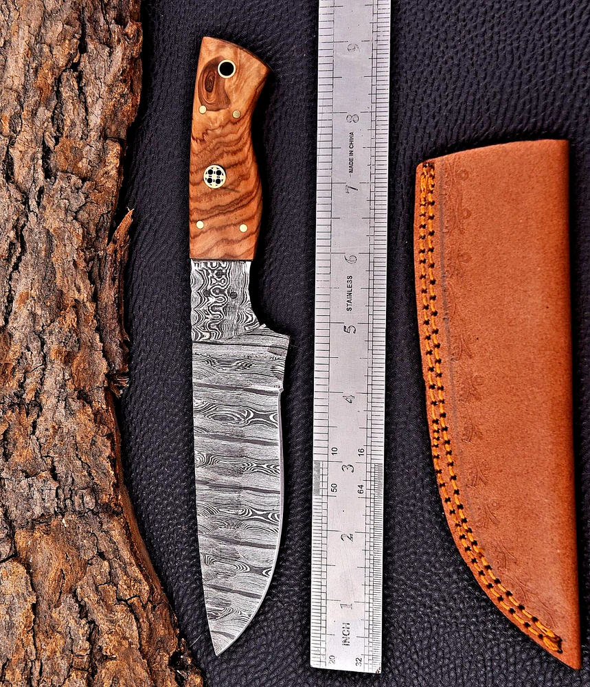 Blade Edge: VERY SHARP Type: Bowie Knife, Everyday Carry, Hunting, Survival, Throwing, SKINNER KNIFE, Damascus Knife, Skinning, Gift, EDC Knife Blade Material: Damascus Steel Original/Reproduction: Original Vintage: No Blade Type: Drop Point Tang: Hidden Handmade: Yes Dexterity: Ambidextrous Handle Material: WOOD HANDLE Blade Color: Gray Brand: M DAMASCUS Features: Sheath Included Blade Length: 5" inches