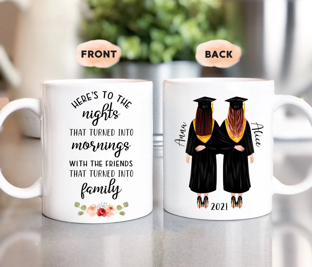 Custom Friends Graduation Mug For Friends Graduation Gift For Girls Mug They Product Details.. This high quality 11oz. ceramic white mug has a premium hard coat that provides crisp and vibrant color reproduction sure to last for years. Perfect for all hot & cold beverages. The highest quality printing possible is used. It will never fade no matter how many times you wash it. Material: 100% Ceramic. Print both sides. Dishwasher and Microwave Safe. High Gloss + Premium White Finish. Printed in the U.S.A. Personalized & Custom. We support personalized and custom mug to add custom, when placing an order, you can add notes to the "order note" in shipping address section. Also you can contact us directly via message. Shipping Info. Ready to ship in 1 to 2 business days, All products are made-to-order and proudly printed in the United States. Shipped by USPS and DHL, You will receive your order in 5-7 days. Replace & Refund. All products are defective during shipping broken, chipped will be replaced free of charge. You are not satisfied with the product, we will refund 100% money to you. If any other issues arise, please do not hesitate to message, we would be more than happy to assist you.