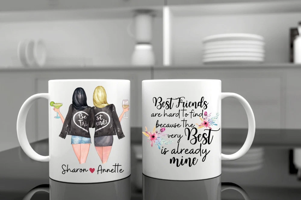 Custom Friends Mug Best Friends Mug Friends Mug Gifts For Bestfriend Gift For Product Details.. This high quality 11oz. ceramic white mug has a premium hard coat that provides crisp and vibrant color reproduction sure to last for years. Perfect for all hot & cold beverages. The highest quality printing possible is used. It will never fade no matter how many times you wash it. Material: 100% Ceramic. Print both sides. Dishwasher and Microwave Safe. High Gloss + Premium White Finish. Printed in the U.S.A. Personalized & Custom. We support personalized and custom mug to add custom, when placing an order, you can add notes to the "order note" in shipping address section. Also you can contact us directly via message. Shipping Info. Ready to ship in 1 to 2 business days, All products are made-to-order and proudly printed in the United States. Shipped by USPS and DHL, You will receive your order in 5-7 days. Replace & Refund. All products are defective during shipping broken, chipped will be replaced free of charge. You are not satisfied with the product, we will refund 100% money to you. If any other issues arise, please do not hesitate to message, we would be more than happy to assist you.