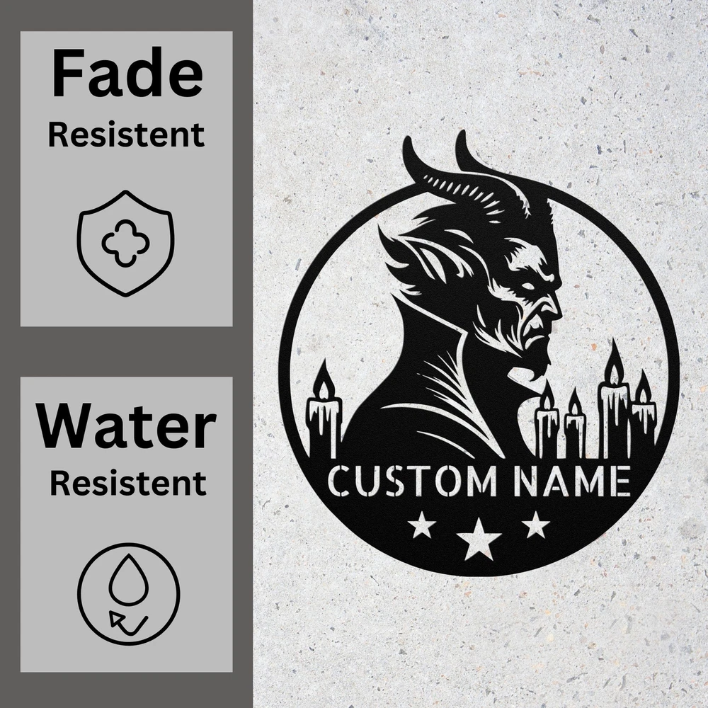 Product Description Custom Gothic Devil Metal Sign Gift for Gothic Fans Decor for Home, Man Cave Embrace the dark side with this Custom Gothic Devil Metal Sign , a bold and edgy piece of decor perfect for your home, man cave, or office . Crafted from high-quality 16-gauge laser-cut metal , this durable sign is finished with a powder-coated coating , making it both striking and resistant to rust and wear, suitable for both indoor and outdoor display. Personalize your sign with a name, special message, or custom text to make it uniquely yours. This gothic-inspired design brings an air of mystery and rebellion, making it the perfect addition to your alternative decor collection. Looking for the ideal gift for someone who appreciates the darker side of life? This custom gothic devil metal sign is the perfect present for gothic fans, devil enthusiasts, and alternative decor lovers . It’s a unique and personalized gift for birthdays, Christmas, or any special occasion , sure to make a lasting impression. Key Features: Premium Material: Made from durable 16-gauge laser-cut metal Long-Lasting Finish: Powder-coated to resist fading, rust, and wear Customizable Design: Add your name, message, or text for a personalized touch Dark, Gothic Aesthetic: Perfect for man caves, home offices, or alternative decor enthusiasts Great Gift Idea: Ideal for gothic fans, devil enthusiasts, and lovers of dark art Order your Custom Gothic Devil Metal Sign today and add a touch of rebellious darkness to your space, or surprise someone special with a personalized gift that celebrates their love for gothic and alternative art! Service and Color Choice Our metal signs are designed to be personalized just for you, making them the perfect addition to any space! The default color for our signs is Black , but we also offer a variety of beautiful options including Copper, Gold, White, and Silver . After placing your order, simply contact us with your preferred color choice, and we'll ensure your sign is exactly how you envision it. Let’s create something special together!