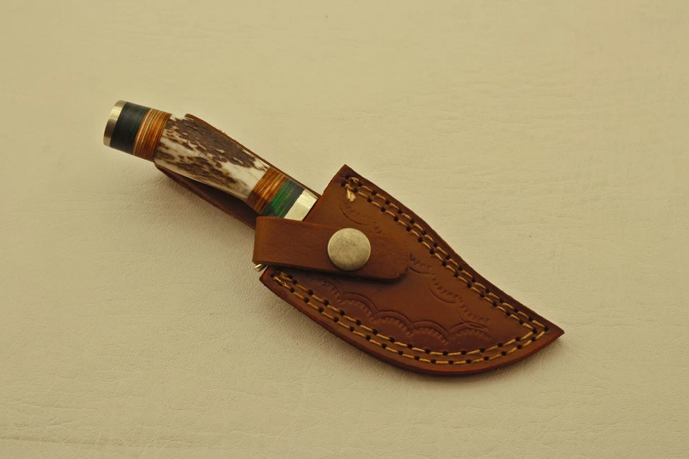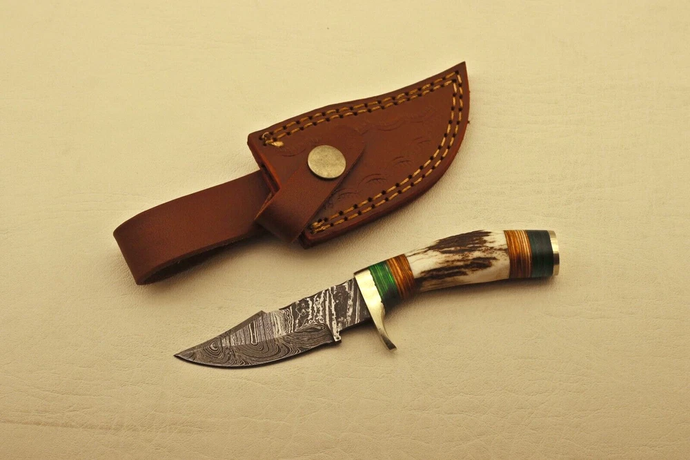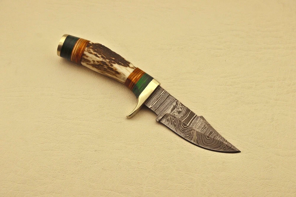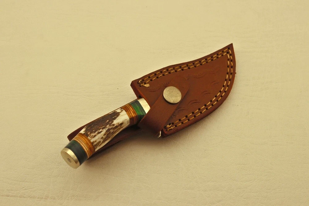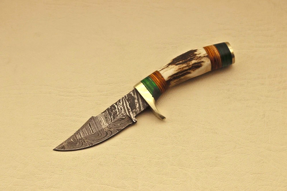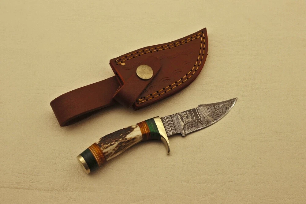 Custom Hand Forged High Damascus S teel Hunting knife, Stag Horn Charming Bolster Leather Sheath Blade of this knife has a nice file work and is made of 512 layers of 4340 stainless steel and 1075 high carbon steel and hardness 55-58 HRC . This robust Blank Blade is lab tested under intense conditions, the balance and shape of this Blank Blade ensures perfect grip. Overall Length: 6” Inches Design: Twist Pattern Layers: 512 Hand Forged Hardness: 55-58 HRC Care Instructions: Keep the blade dry after each cleaning. Warning: Take care when removing product from packaging. Keep fingers clear of blades. Store away from children. Complimentary gift messages *Gift wrapping service available for minimal additional fee We do sell wholesale, please contact us for special discounts on bulk orders. FEEDBACK POLICY: YOUR FEEDBACK IS VERY IMPORTANT FOR US, IF THEIR IS ANY KIND OF PROBLEM PLEASE GIVE US OPPORTUNITY TO SORT THE ISSUE