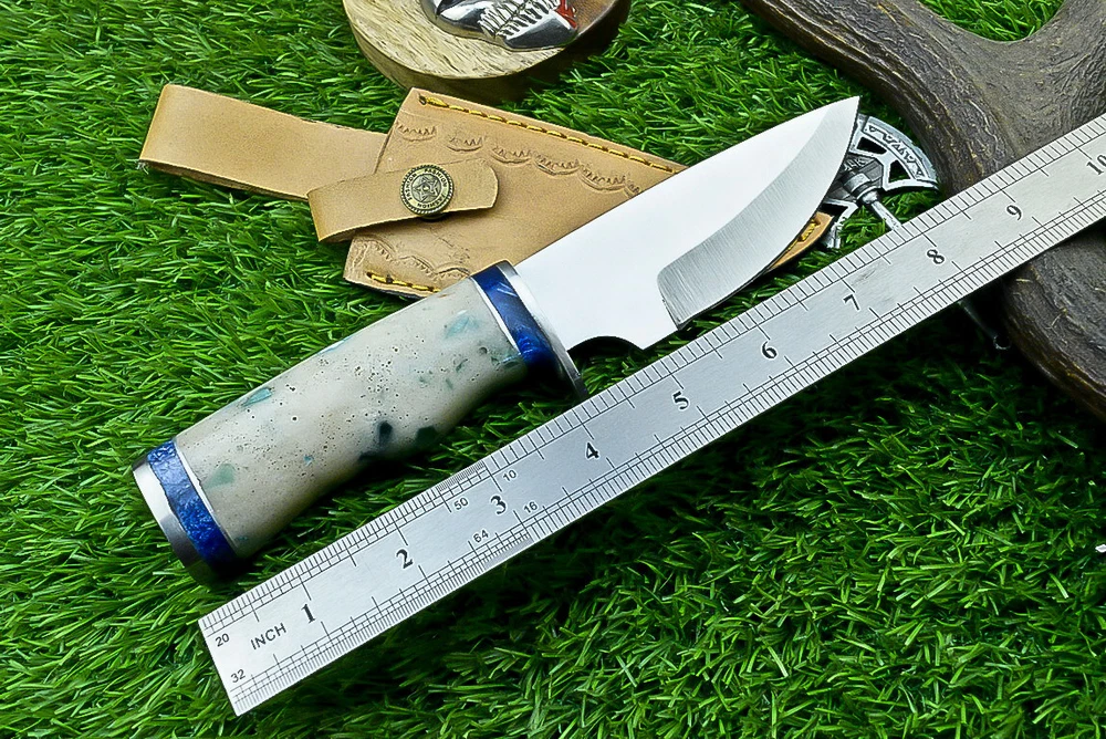 EXCLUSIVE HANDCRAFTED J2 STEEL BLADE HUNTING KNIFE SKINNING KNIFE, BOWIE KNIFE, CAMPING KNIFE EDC Product Details: Overall Length: Approximately 9.00" inches Blade Material: J2 Steel Blade Hardness: 54-58 HRC Blade Thickness : 4mm Size Verification: To help you easily determine the size, we've included images with a scale for precise dimension reference. Thank you for your understanding. We appreciate your consideration. Handle Material: Resin with handmade steel bolster. Included Accessories: Sheath For International Customers: We kindly advise our international customers to familiarize themselves with their country's regulations prior to making a purchase. If customs in your region request customs duties, please be prepared to cover these costs. Regrettably, we cannot assume responsibility, nor issue refunds in such cases. AGE LIMITATION: Please note that we exclusively sell knives to individuals who are 18 years of age or older. Additional Details: Leather Sheath (if pictured): Rest assured, this item comes with a superior-quality, sheath. Crafted with meticulous hand-tooling and stitching, it exemplifies fine craftsmanship and is designed for exceptional durability. The added stitching ensures it withstands years of demanding use, providing reliable protection for your knife throughout its lifetime. Care and Maintenance: When necessary, use a Diamond Wet Stone or a superior sharpening tool to maintain a 20-degree blade edge. After use, clean the item with soap and water, ensure thorough drying, coat it with gun oil, and store it separately from the sheath. Leather absorbs moisture from the air and can lead to blade rust if stored improperly. Customer Feedback: Your satisfaction and feedback are of utmost importance to us. We genuinely appreciate your positive reviews! When assessing shipping time, please consider international transit. Your recognition bolsters our confidence to enhance our services. If you encounter any issues with your order or product dissatisfaction, please reach out to us first. We are committed to resolving any concerns to your satisfaction and kindly request you not to leave neutral or negative feedback. Payments & Returns: All accepted eBay payment methods are available for this purchase. Our return policy typically extends to 14 days. Shipping and Handling: We offer free shipping on all our products (In the USA) Tracking Info: The buyer will receive the tracking number via email (if available). You can also track the shipment in the "Order Details" section on eBay. USPS UPS DHL updates tracking information nightly (if available). Contact: Feel free to contact us anytime via eBay messages. We are dedicated to responding to your inquiries within 24 hours and providing the best possible assistance.