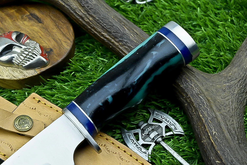 Handmade: Yes Handle Material: Resin Purpose: Everyday Carry Number of Blades: 1 Vintage: No Blade Type: Drop Point Features: Sheath Included Width: 0 Blade Material: J2 Hand-Forged/Manufactured: Hand-Forged Brand: KNIVES UNLIMITED Modified Item: No Autheneicity: Original Year: 2024 Overall Length: 9.0" Tang: Rat-Tail Process: Fine Art Heat Treatment: OIL QUENCHED, Excellent heat treatment to the blade Dexterity: Ambidextrous Blade Edge: Plain Type: Boot, Bowie, Bowie Knife, Butcher, Camping Knife, Chef, Combat, Decoration, Everyday Carry, Gift, Hunting, Hunting Knife, Miniature Knife, Outdoor, Survival, Tanto Knife, Throwing, Wild Life Original/Reproduction: Original Blade Color: Silver Cutting Edge: 0