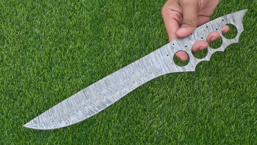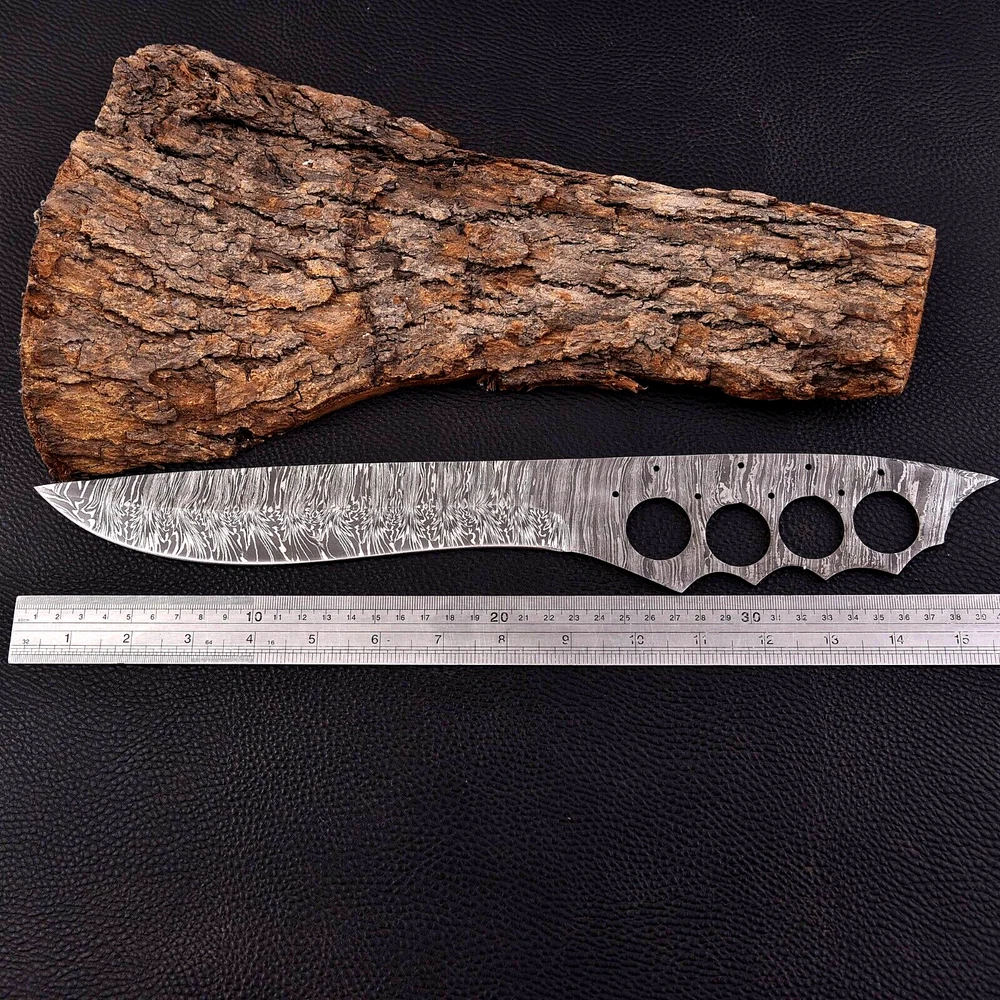 CUSTOM HAND MADE BOWIE HUNTING KNIFE HAND FORGED DAMASCUS STEEL BLADE BLANK This superb design knife is hand forged. Blade of this knife has a nice file work and is made of 512 layers of 4340 stainless steel and 1075 high carbon steel and hardness 55-58 HRC . This robust knife is lab tested under intense conditions, the balance and shape of this knife ensures perfect grip. Overall Length: 16" Inches Blade Length: 9" Inches Handle Length: 7" Inches Damascus Design: Twist Pattern Layers: 512 Warning: Keep fingers clear of blades. Store away from children.