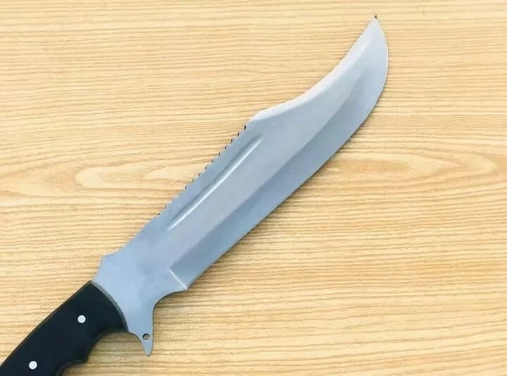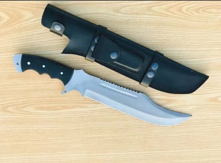 Item details Highlights Designed by Hafiz Crafts Supplies for making crafts Materials: Blade material: Carbon steel; Handle material: Black Micarta Hand forged -10 inches long Blade, made of carbon steel-Unpolished Blade for Heavy duties use. -Balance water tempered on the edge-so its very strong. -5 inches full tang handle made of Black Micarta. -Sheath included -Personalization Available (Name, logo or Text Engraving). Crafted for the adventure-seeker, this Custom Handmade Carbon Steel Blade Survival Bowie Knife is a robust companion for enthusiasts of hunting and camping. Its full tang construction ensures durability and balance, while the high-carbon steel blade promises a sharp, resilient edge. The elegant clip point blade design, measuring 10 inches, combines precision with versatility. The knife features a comfortably contoured Black Micarta handle that provides a secure grip in all conditions. An included sheath offers protection and ease of carrying. Exquisitely made by Hafiz Crafts in Pakistan, this knife is an original, handmade piece that reflects a passion for the art of knife-making and an appreciation for traditional designs.