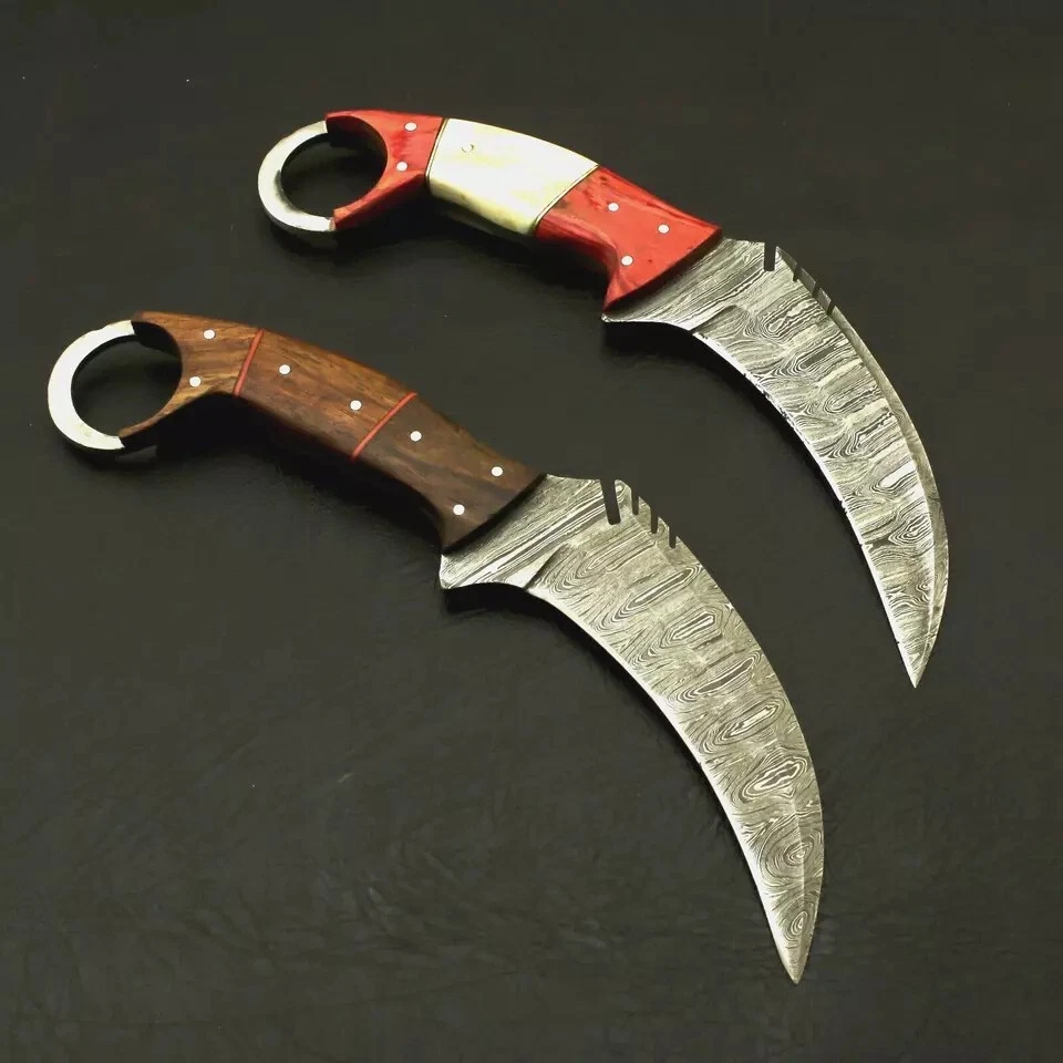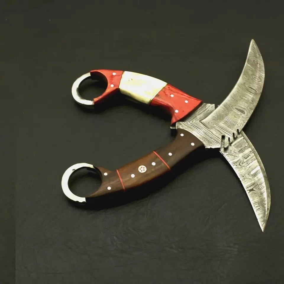 Custom Handmade Damascus Steel Karambits Bowie Survival Knife W/ Leather Sheath SPECIFICATIONS TOTAL LENGTH = 8.5 INCH BLADE LENGTH = 4.5 INCH BLADE MATERIAL = DAMASCUS STEEL HANDLE LENGTH = 4 INCH HANDLE MATERIAL = ROSEWOOD SHIPPING WE WILL SHIP THIS WITHIN 5 TO 7 DAYS AFTER RECEIVING PAYMENT WE USE TRACK ABLE COURIER SERVICE LIKE DHL UPS PAKISTAN POST REMOTE AREA CUSTOMER MUST PAY 45 $ EXTRA SHIPPING Returns are accepted within 14 days of delivery where item sold is unused & undamaged. Buyer will pay the return cost. Age Requirements & Verification: Strictly sold to 18+ ONLY. We may ask you to produce your ID to prove your age requirements. Please help us to keep our community safe.