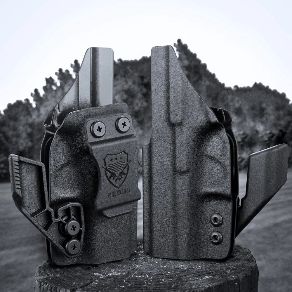 IWB Kydex Holster with Claw Attachment and Optic Cut: wih Glock 43 / Glock 43X - Not Fit G43X MOS, Concealed Carry Holster Glock 43, Adj. Cant & Retention, Right Hand HOLSTER FITS: G43 iwb holster is with Glock 43/ 43x. Holster is not with G43X MOS US .08 INCH KYDEX MATERIAL: G43 holster is made of top quality .08 inch kydex material, which is strong, durable, washable and molded specifically for G43 OPTICS READY: G43 holster with claw was designed to accommodate different optics, RMR/SRO MAX CONCEALMENT: Claw attachment let the butt of more close to your body to eliminate printing and achieve max conceal-ability. Equipped with 2 extra screws for customer remove claw carry POSITIVE AUDIBLE “CLICK” LOCK SYSTEM: When holster retention is well customized, you would hear clear “click” sounds when your handgun is firmly holstered FULL LENGTH SWEAT SHIELD AND OPEN BOTTOM: Sweat shield avoid sweats from body. The open end muzzle accommodate threaded barrel ADJUSTABLE CANT AND RETENTION: holsters cant are adjustable from 0 to +20 degree, loosen a little bit of screws on belt clip, then move the angle and tighten screws. The adjustable retention allows you customize idea tightness TIPS: To avoid screws get lost, we highly suggest utilizing thread locker on all threads to prevent loosening.