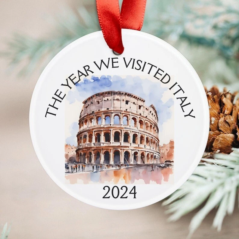 Custom Italy Ornament, Personalized Italy Keepsake, Anniversary Gift Italy, Trip Souvenir Rome Italy Ornament Travel Italy Christmas If you need to buy more, please inbox us We have two material options (Ceramic & MDF), please read the product description as below to choose your favorite options. MDF Ornaments 1-sided design. Print type: Sublimation printing. Crafted from durable MDF with a high-gloss plastic finish so your designs last a lifetime. Shapes: Round, star, heart and oval . Product Dimensions: Circle & Heart, 2.75” tall; Oval & Star, 3.25” tall. Ships with a festive gold cord for easy hanging. CERAMIC Ornaments 125" (3mm), 2.75" height (circle), thick high-quality porcelain One-sided print Hole for the hanging string Gold-toned string included Available in 4 shapes - Snowflake, Star, Heart and Circle The height of the hole can slightly deviate Shipping, Return and Refund Policy On average, merchandise is produced and shipped from our facility 2-4 business days after purchase. Standard Shipping: 5-7 working days for USA. Please contact us if you have any dissatisfaction with the item you buy so that we give you the solution. It is easier for us to handle your issue if you send us the proof like an image. We can replace another within 30 days without fee if the item is defective, damaged, or an error is made on our end.