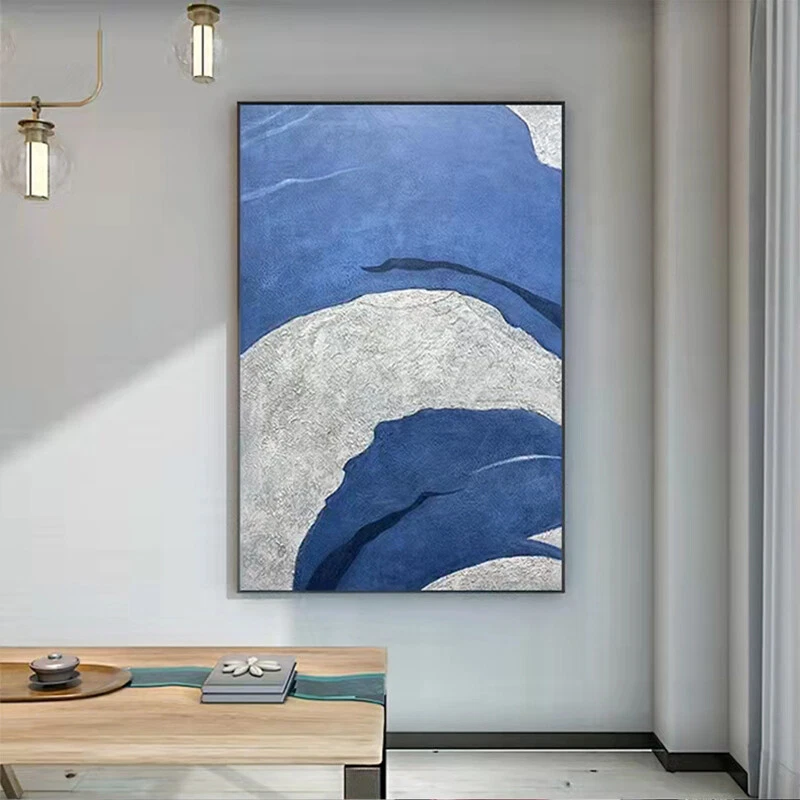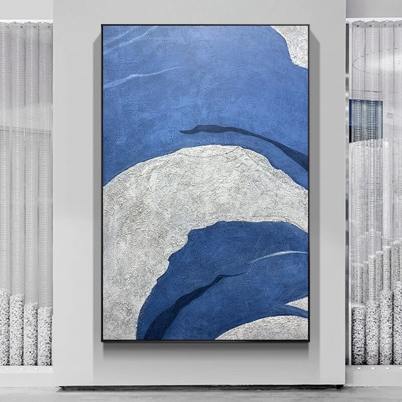 Custom Klein Blue Pure Handpainted Abstract Vertical Oil Painting Texture Art