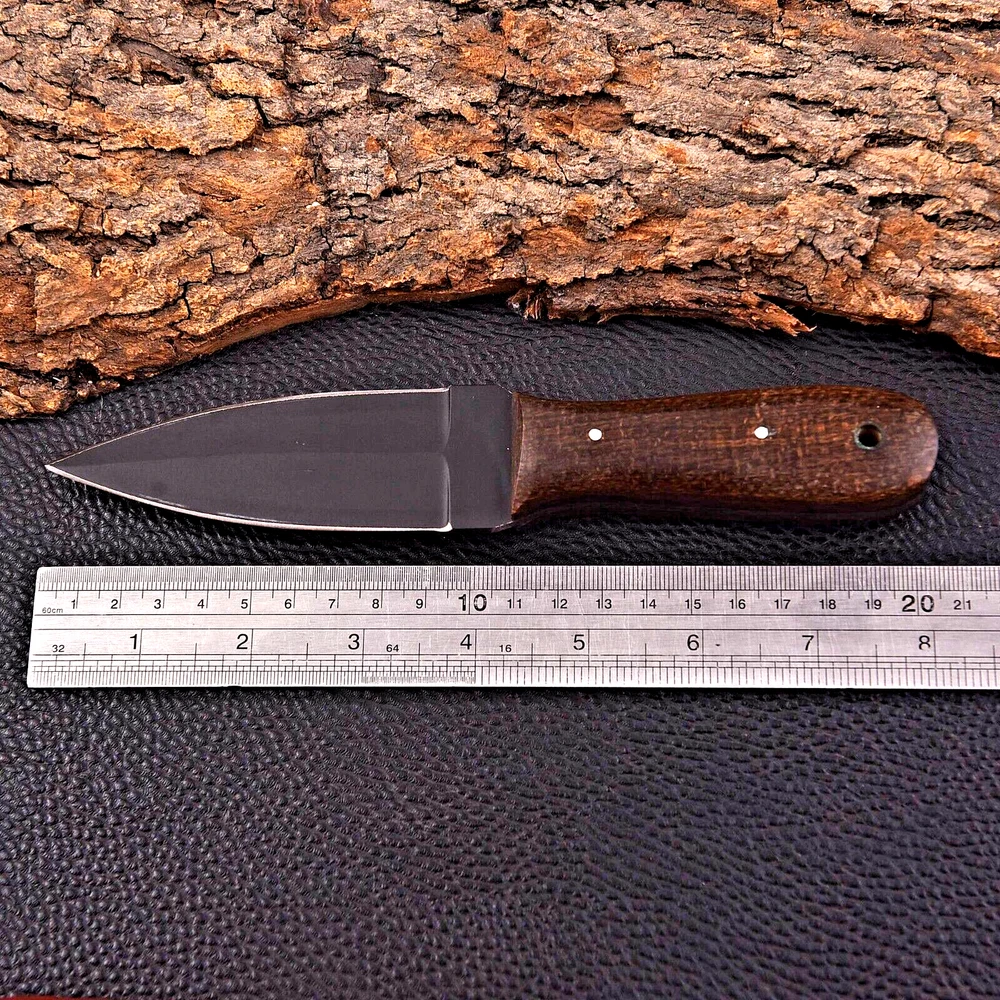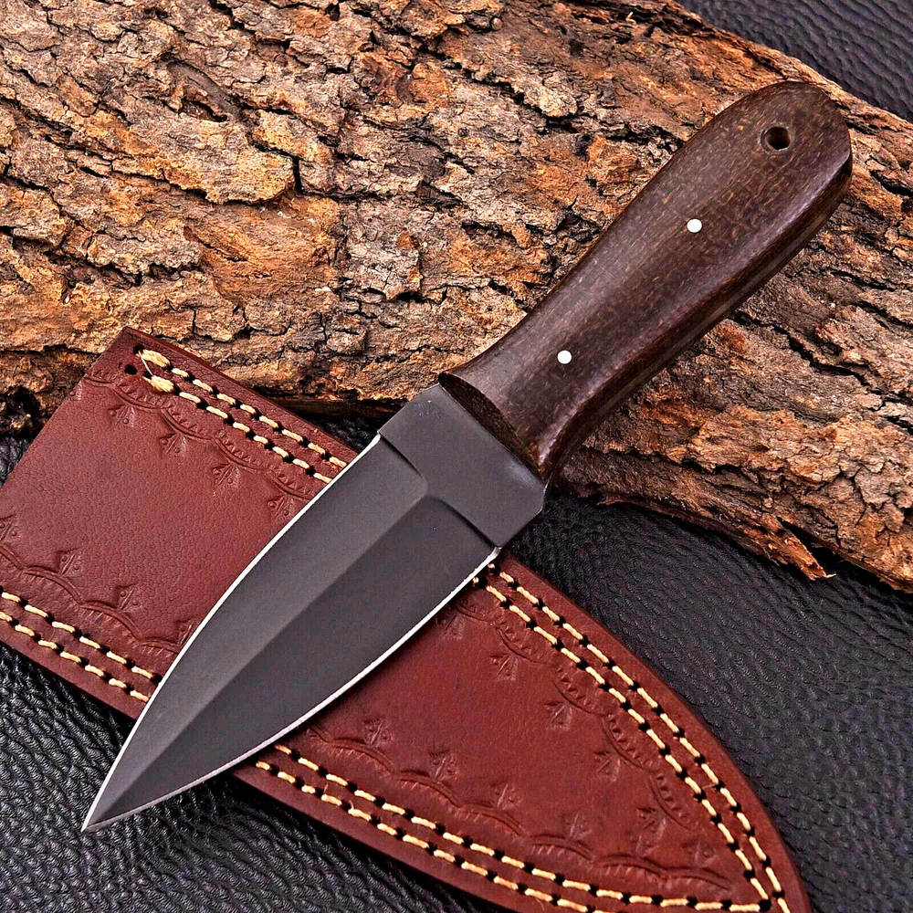 CUSTOM HANDMADE CARBON STEEL BOOT KNIFE DAGGER HUNTING KNIFE CAMPING SURVIVAL EDC KNIFE Micarta Handle This superb design knife is handmade. Blade of this knife has a nice file work and is made of 512 layers of 4340 stainless steel and 1075 high carbon steel and hardness 55-58 HRC . This robust knife is lab tested under intense conditions, the balance and shape of this knife ensures perfect grip. Overall Length: 8" Inches Blade Length: 4" Inches Handle Length: 4" Inches Sheath: Leather